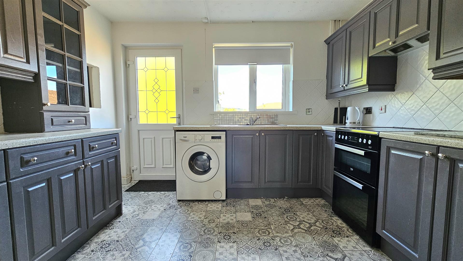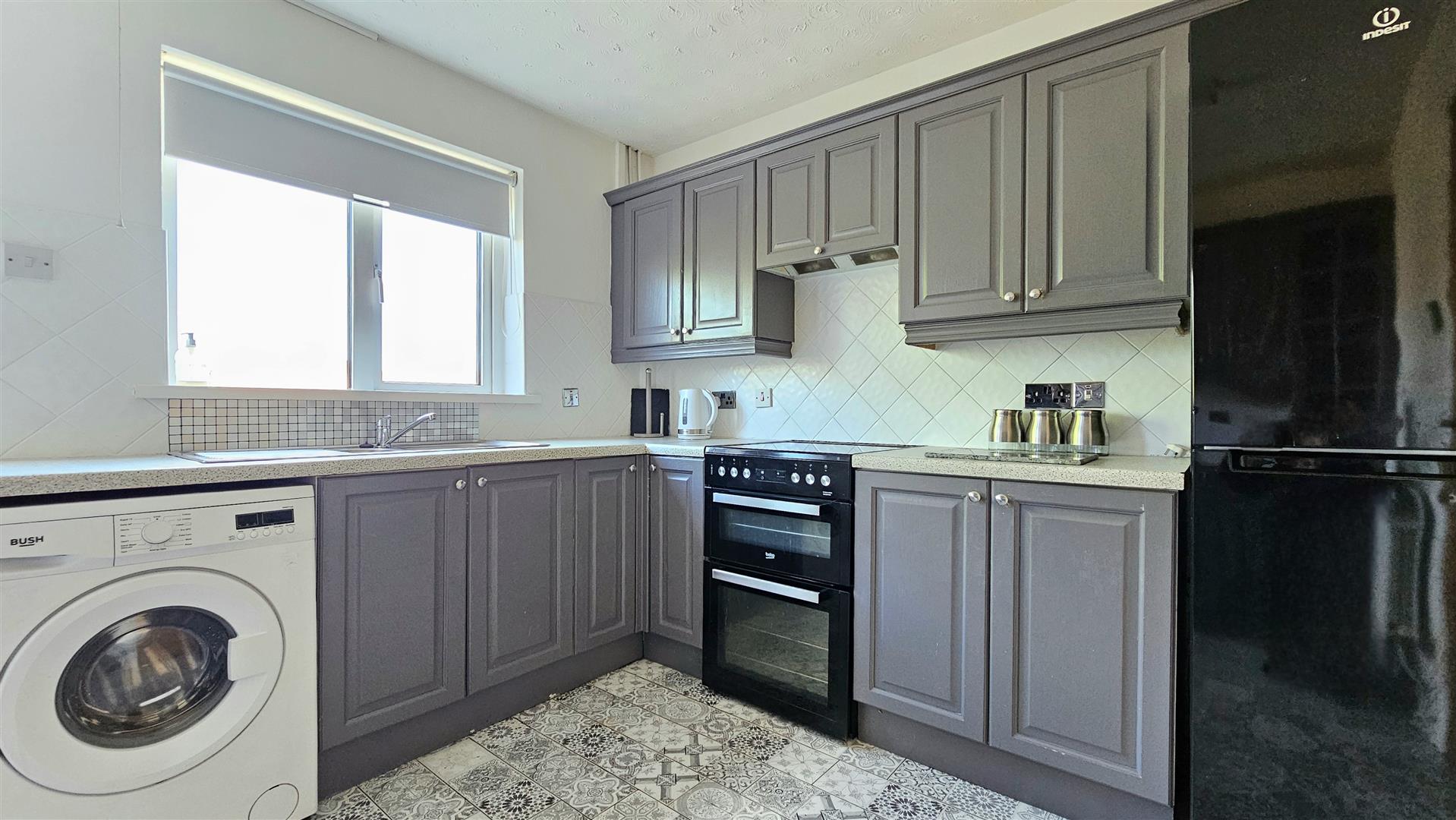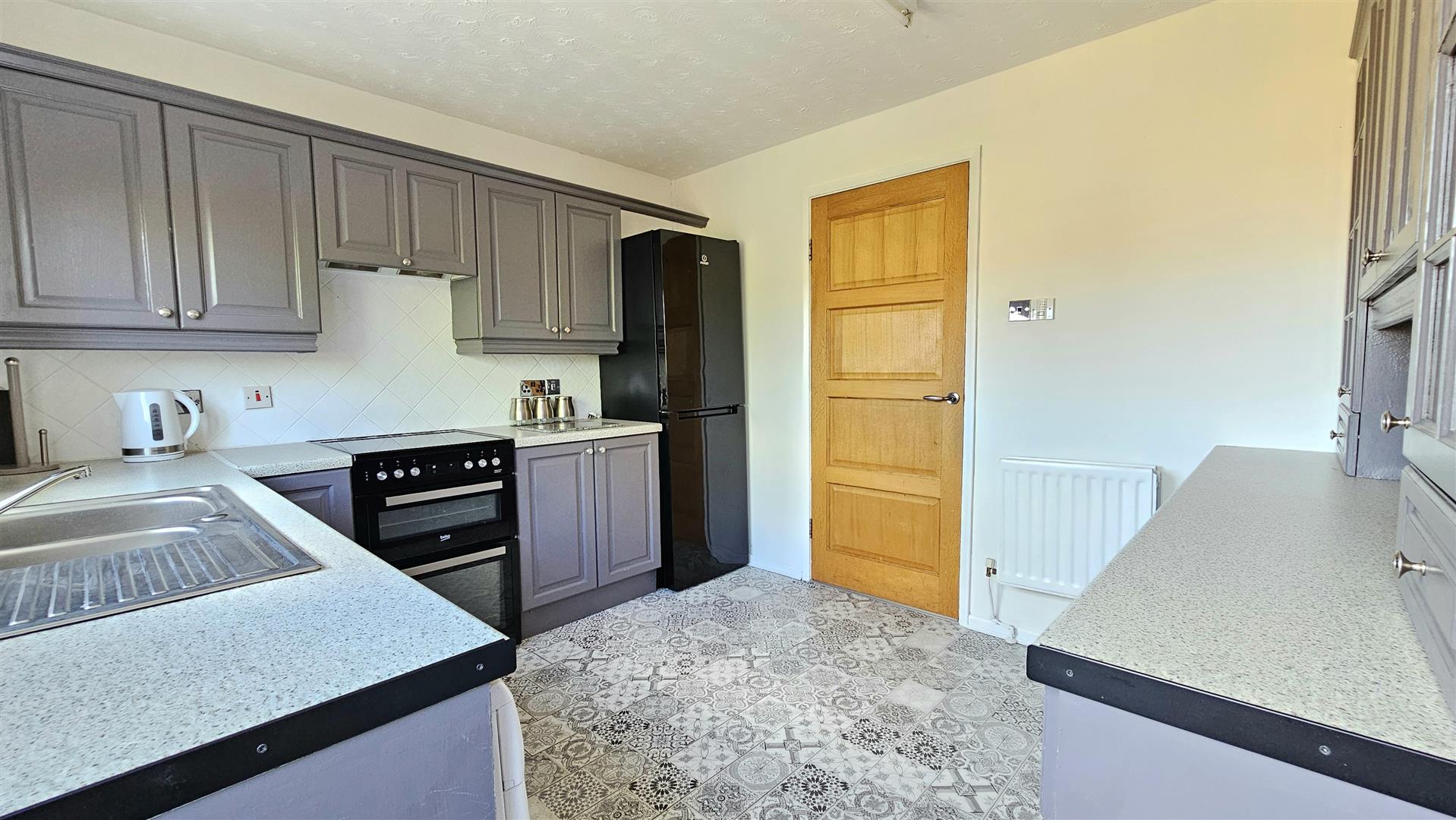 The kitchen is fitted with a range of grey high and low level units, and the family bathroom includes a white suite with a separate shower cubicle. The house benefits from double glazed uPVC windows and an oil-fired heating system.