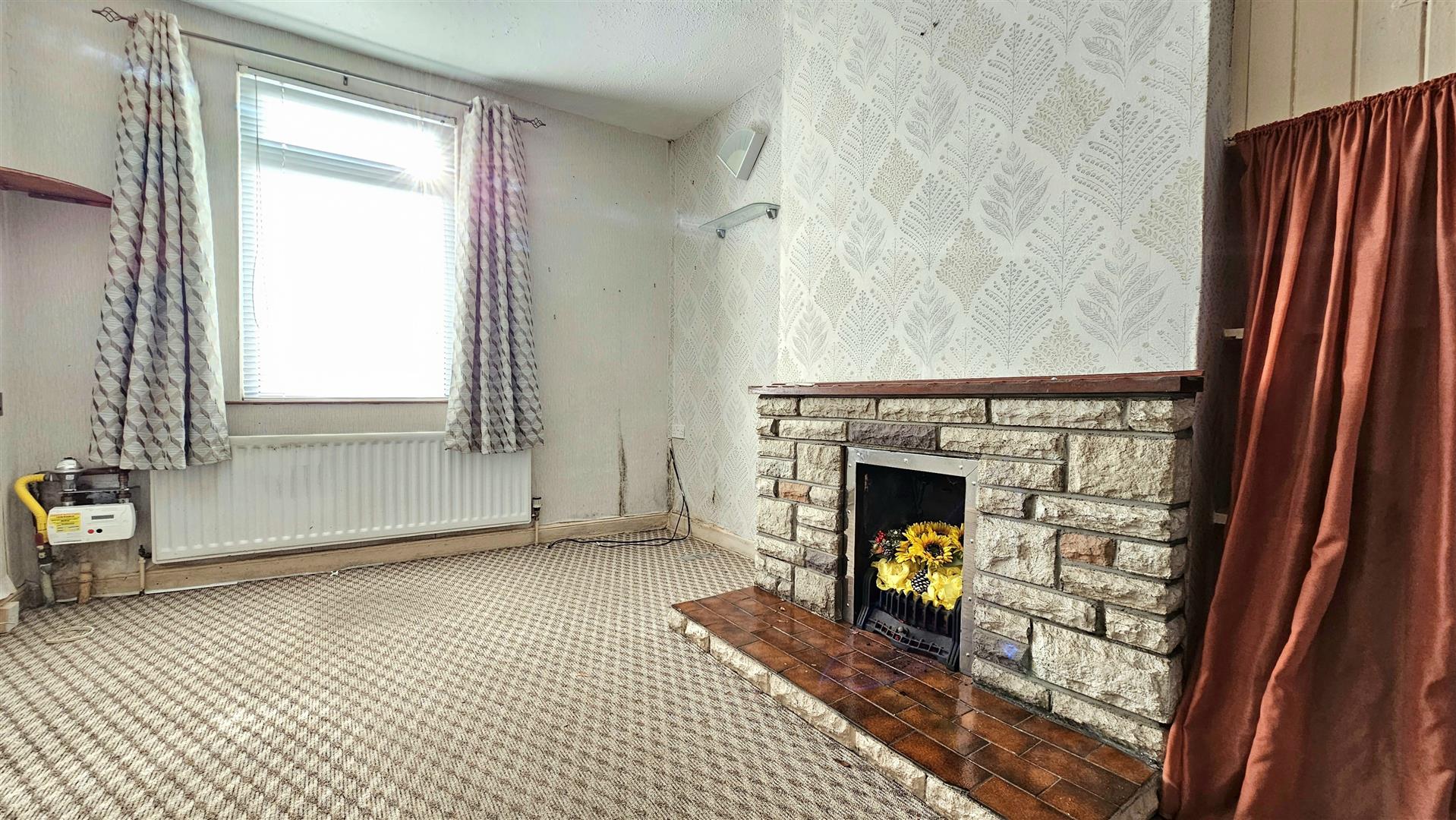 Double glazed window to front aspect, fireplace with stone surround and tiled hearth, radiator x 2, sliding doors to kitchen