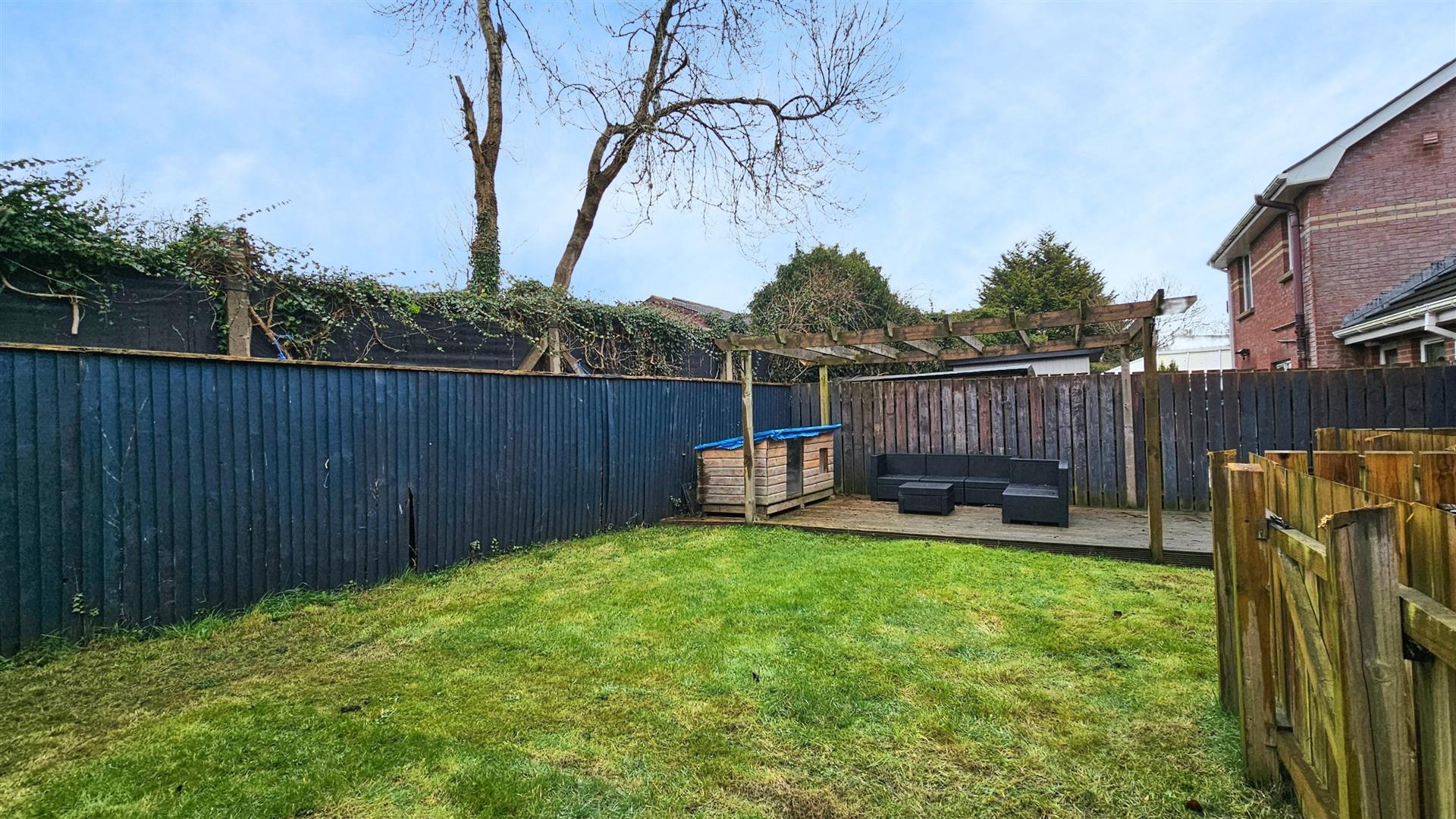 Enclosed rear garden part laid to lean and part laid to patio