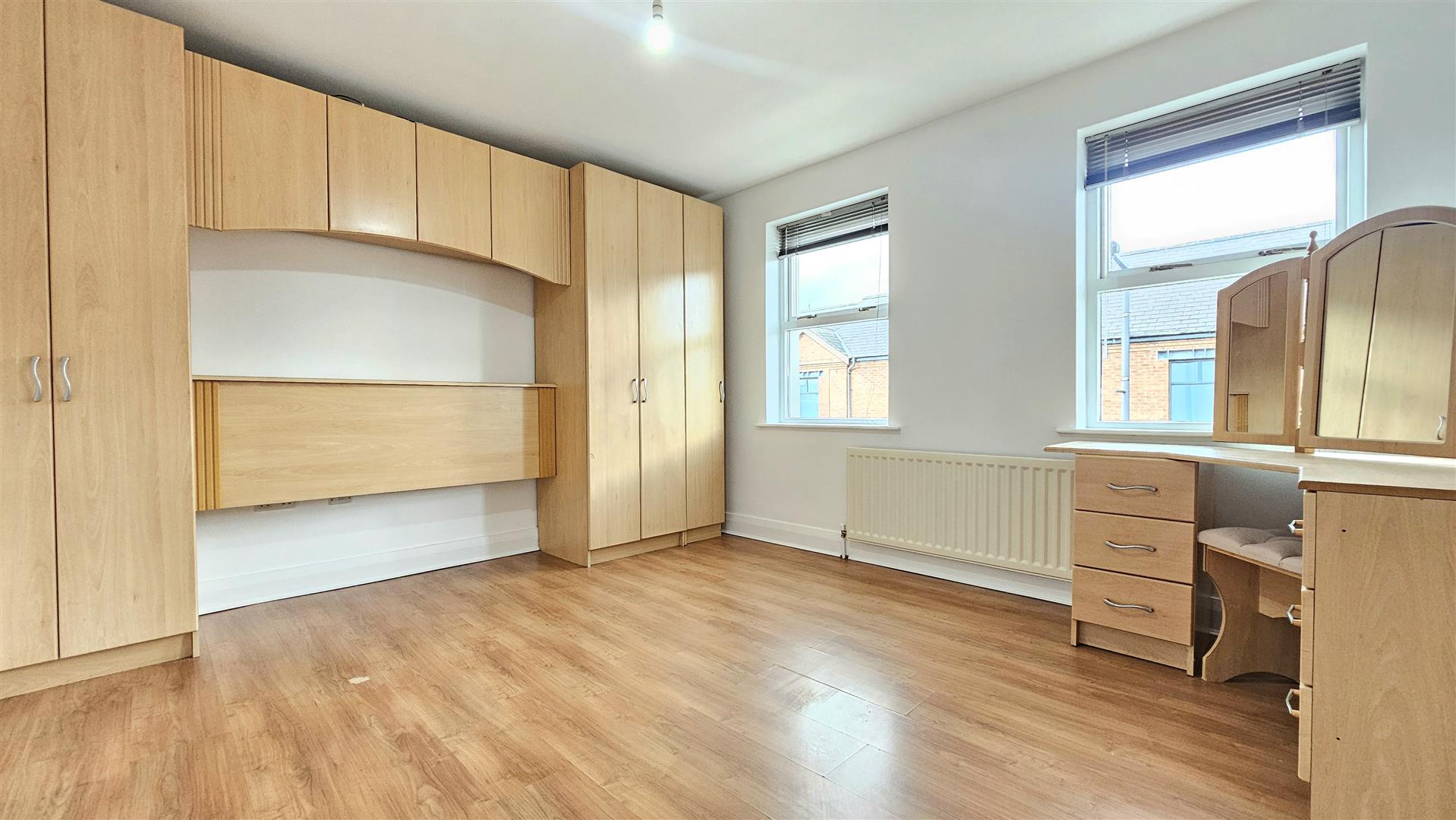 Double glazed window to front aspect, range of fitted bedroom furniture comprising wardrobe and overhead storage, laminate wood flooring.