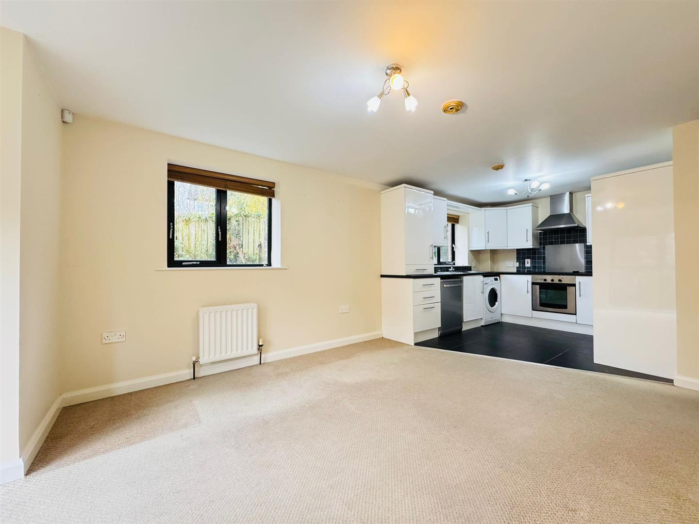 Inside the accommodation comprises; communal entrance hall, own entrance hall, open plan living / kitchen / dining with modern white high gloss fitted kitchen with built in oven & hob and space for appliances.