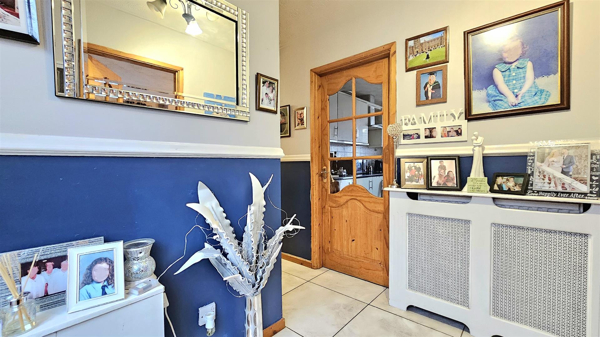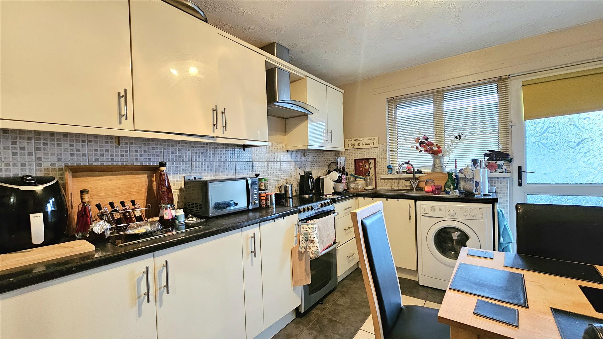 Double glazed window to side aspect, double glazed door, range of high & low level units with roll edge worktops, inset stainless steel sink & drainer with mixer tap over, stainless steel chimney style extractor fan, plumbed for washing machine, radiator, tiled floor