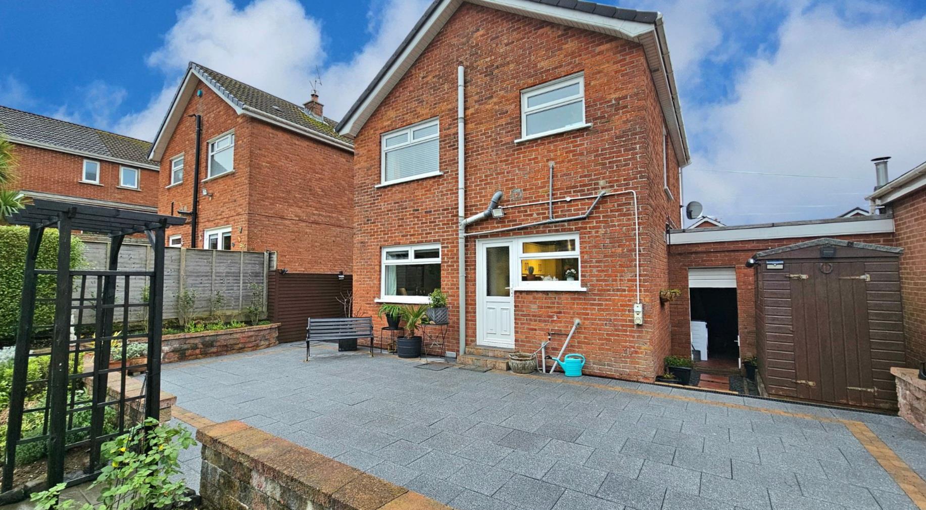 This well-presented link-detached house is well suited to a first or second time buyer, offering a practical and well-balanced layout in a convenient location close to Carrickfergus town centre and local amenities. The accommodation comprises three well-proportioned bedrooms, all benefiting from built-in wardrobes, together with a spacious 13'5 x 11'2 lounge featuring a fireplace and laminate flooring, while the kitchen is fitted with modern shaker-style units and is complemented by a separate dining room that provides useful additional space for entertaining. The bathroom has been recently updated and incorporates a contemporary white suite with a vanity unit and feature PVC wood-panel style splashbacks, while further benefits include double glazed uPVC windows and a gas heating system. Externally, the property enjoys generous rear gardens laid to lawn with a desirable westerly aspect, along with a driveway providing off-road parking for two cars and an attached garage with a roller door. Overall, the property is well presented throughout and offers a straightforward move, with early viewing recommended.