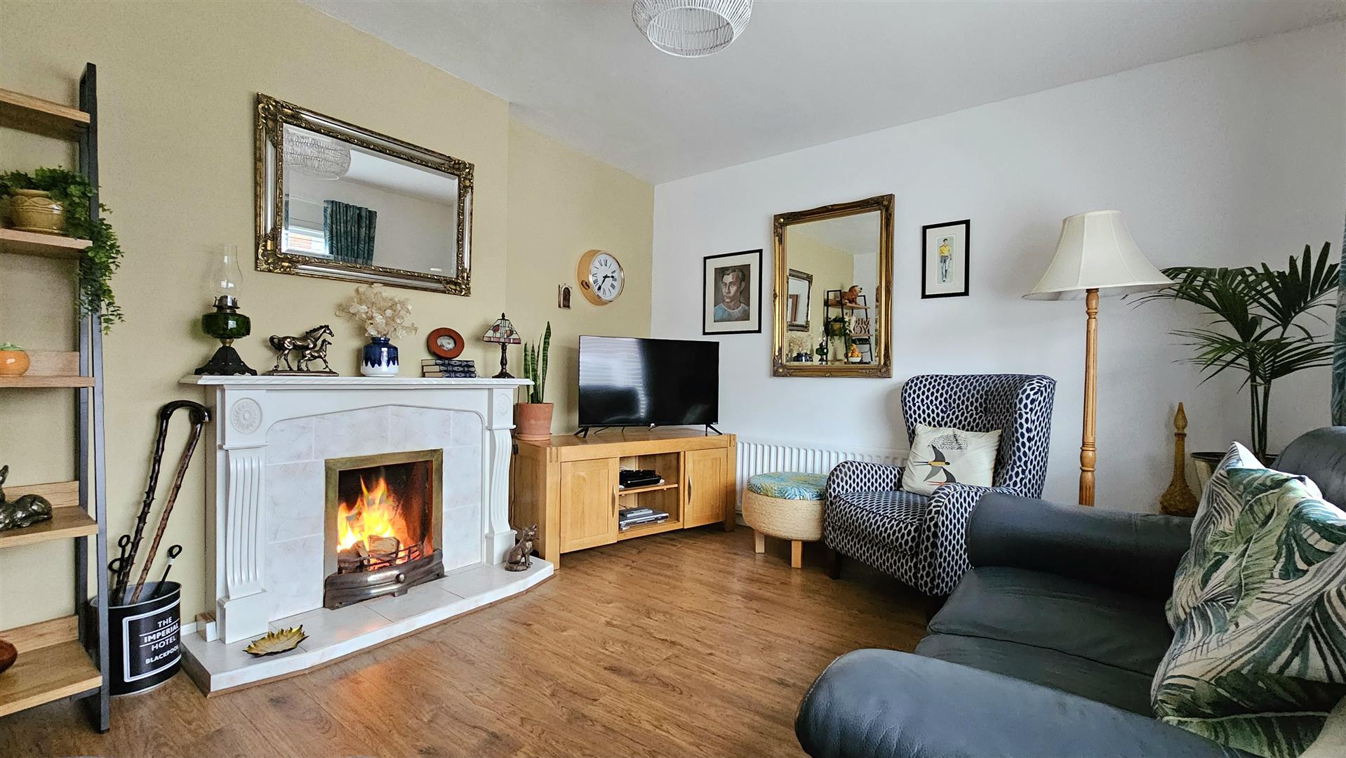 Double glazed window to front aspect, fireplace with wood surround, tiled inset and hearth, radiator, laminate wood floor