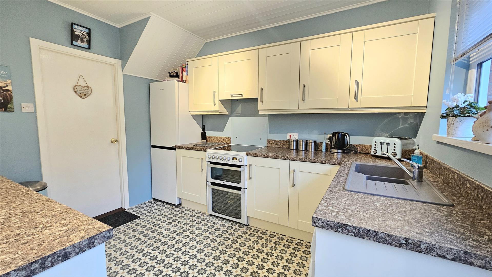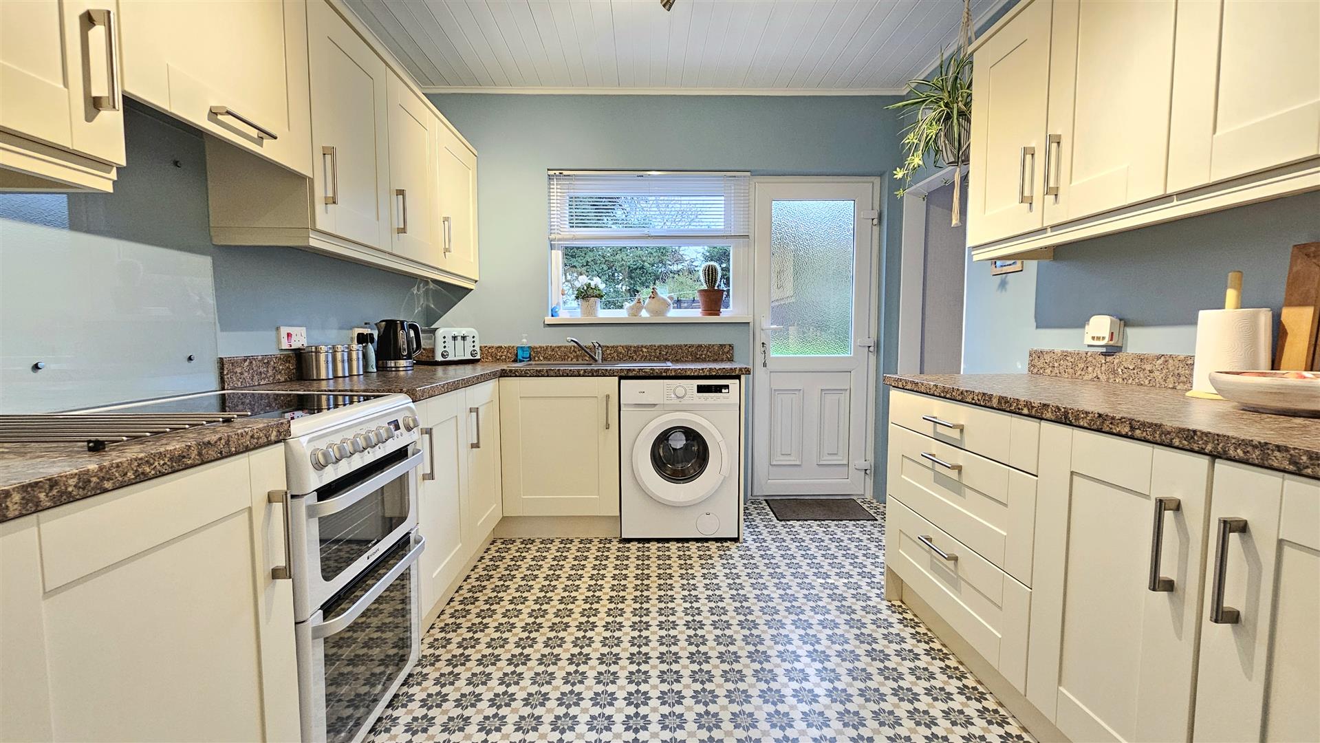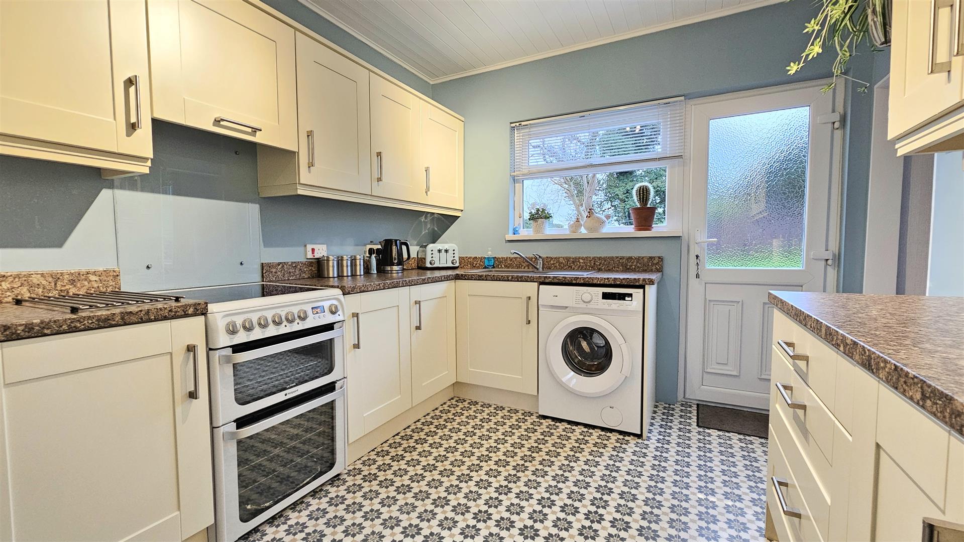 Double glazed window and door to rear aspect, excellent range of shaker style high and low level units with roll edge worktops, inset 1.5 bowl stainless steel sink and drainer with mixer tap over, extractor fan, door to dining room