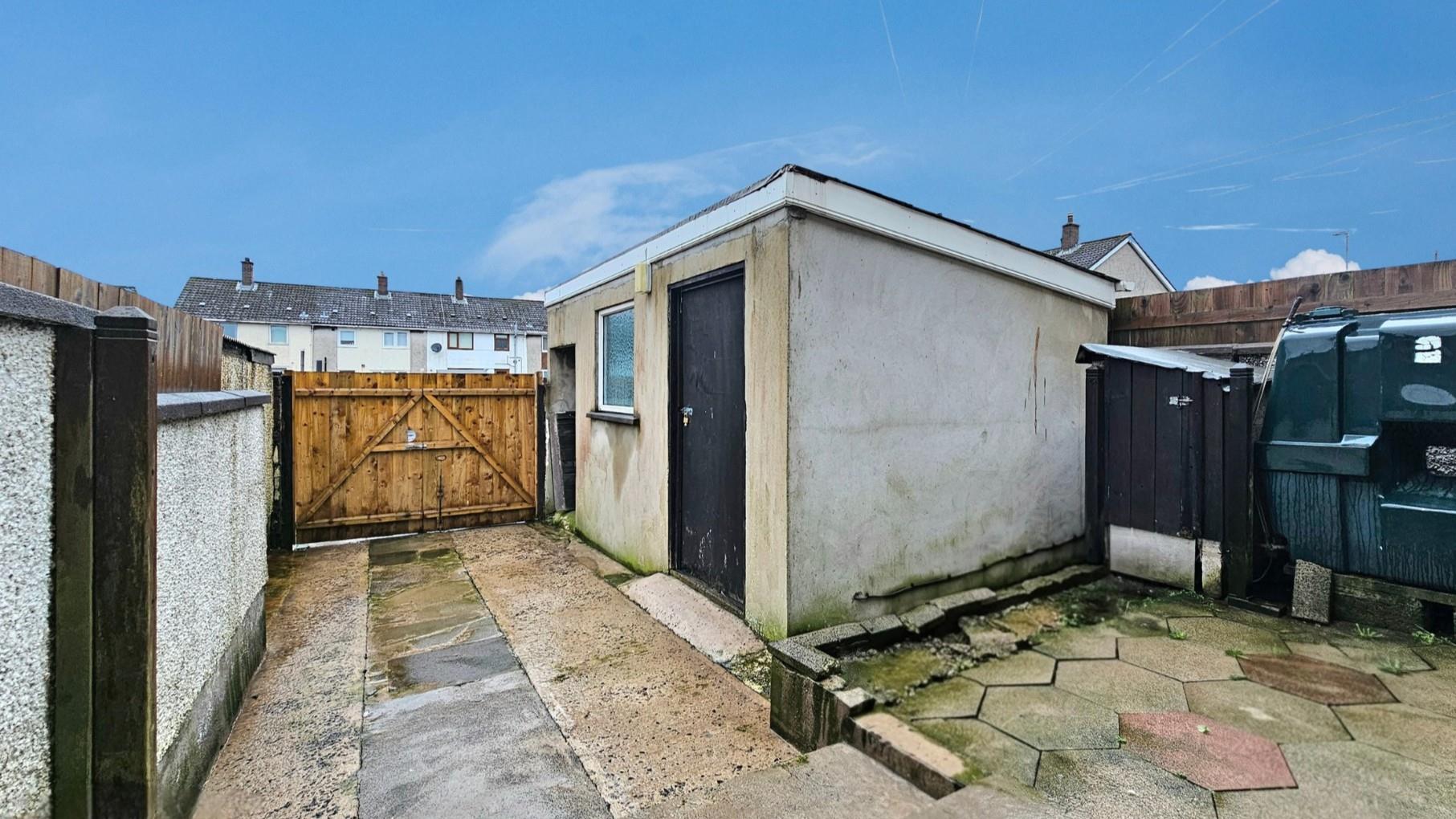 At the rear there is an enclosed garden laid to hard standing with a westerly aspect, brick built shed (suitable as a work shop or entertainment), double gate proving vehicle access