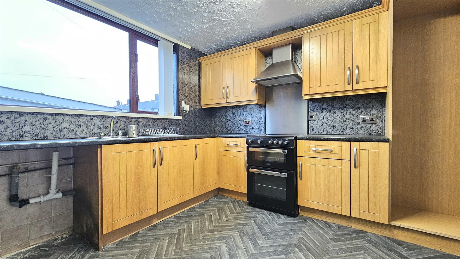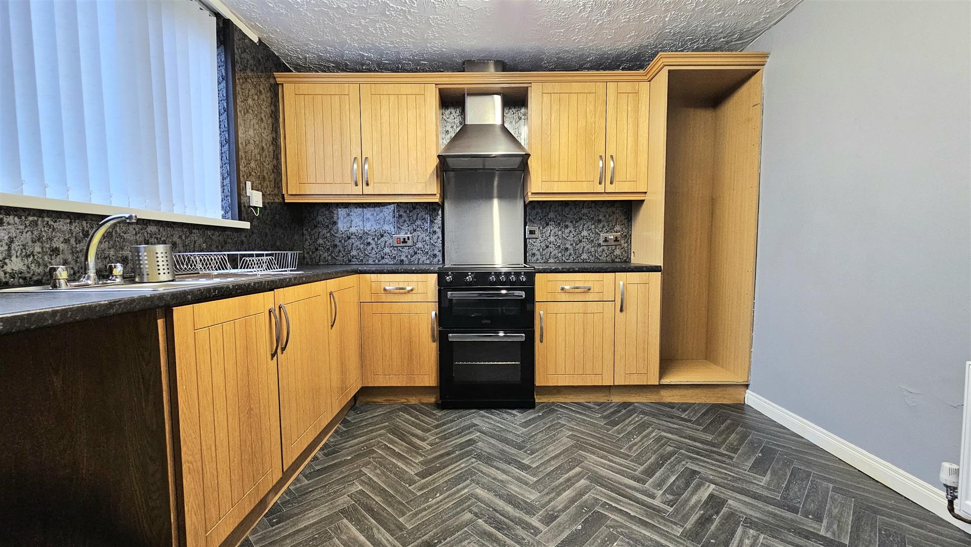 Double glazed window to rear aspect, double glazed door to rear garden, range of oak style high & ow level units with roll edge worktops, inset stainless steel sink & drainer with mixture tap over, stainless steel chimney style extractor fan & stainless steel splash back, plumbed for washing machine, radiator, understairs storage