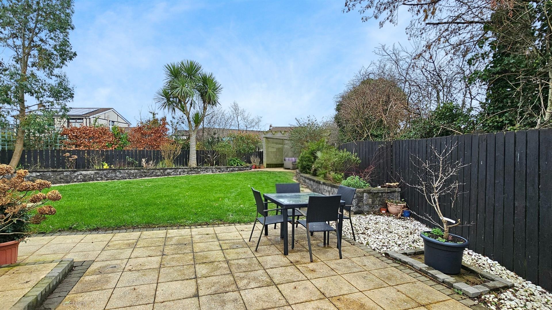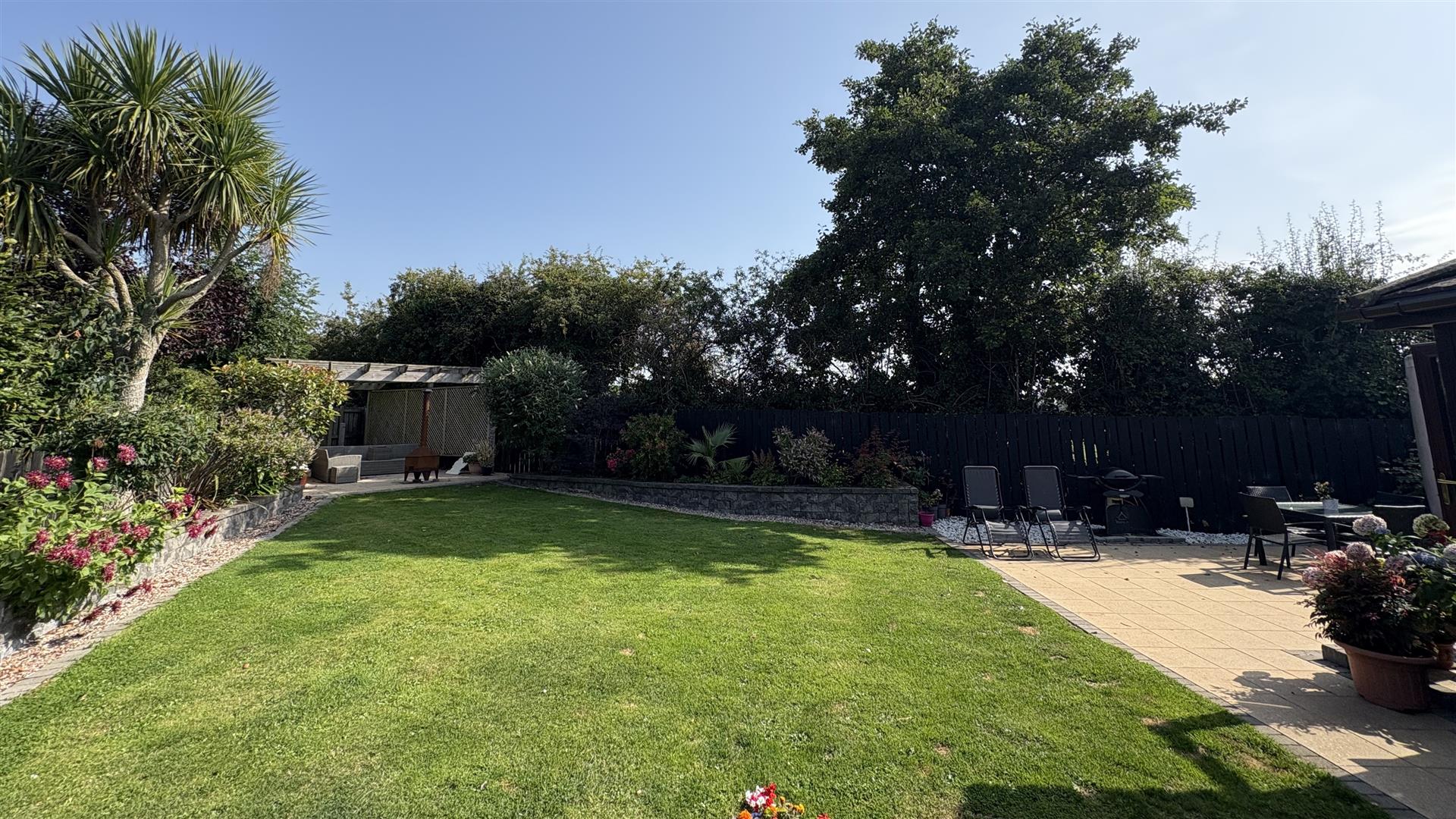 Generous landscaped private gardens part laid to lawn part laid to patio