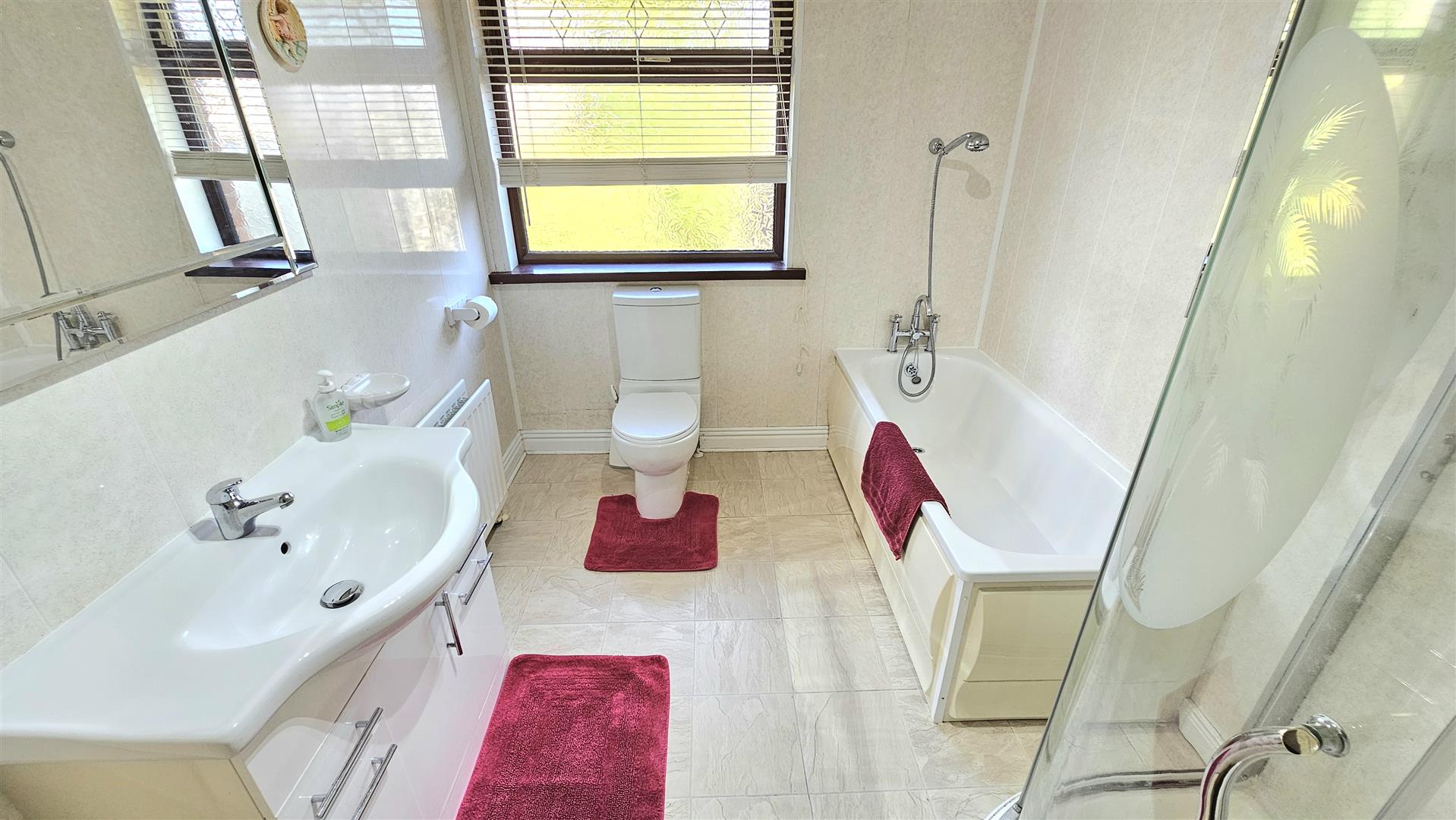 White bathroom suite with a separate shower cubicle
