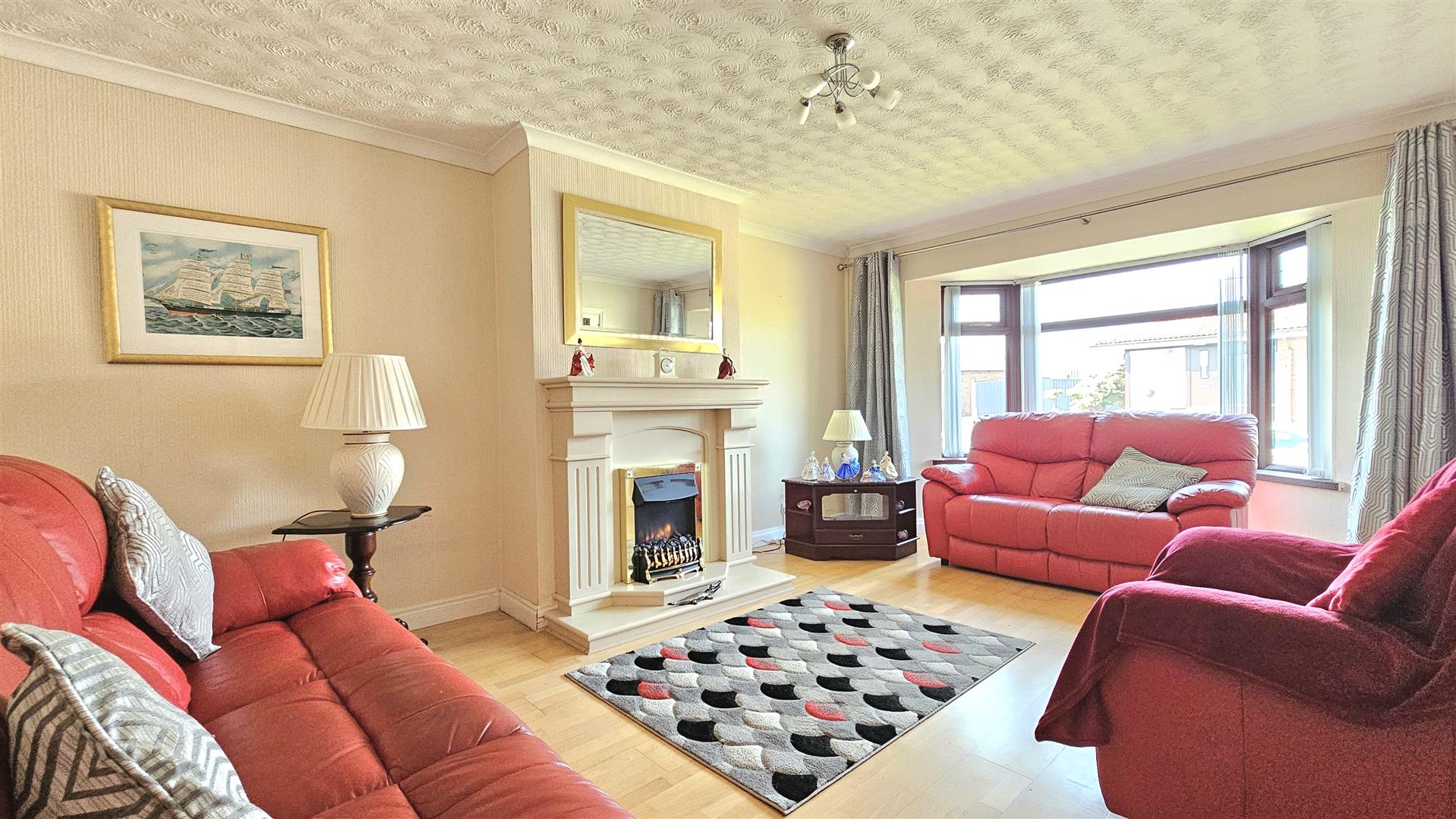 17'9 x 12'6 lounge incorporating a bay window and marble fire surround