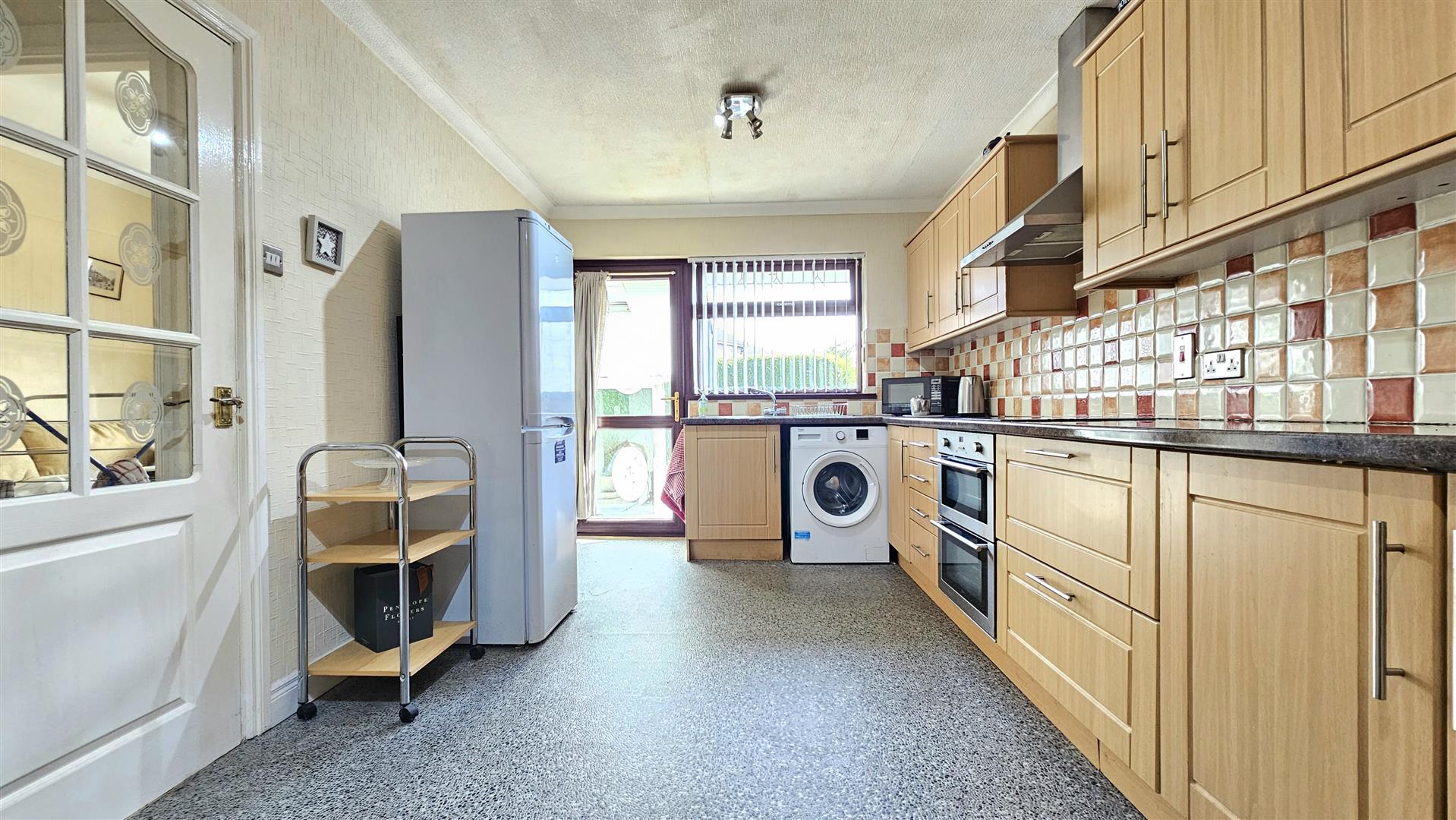 Kitchen diner boasts an extensive range of beech style units