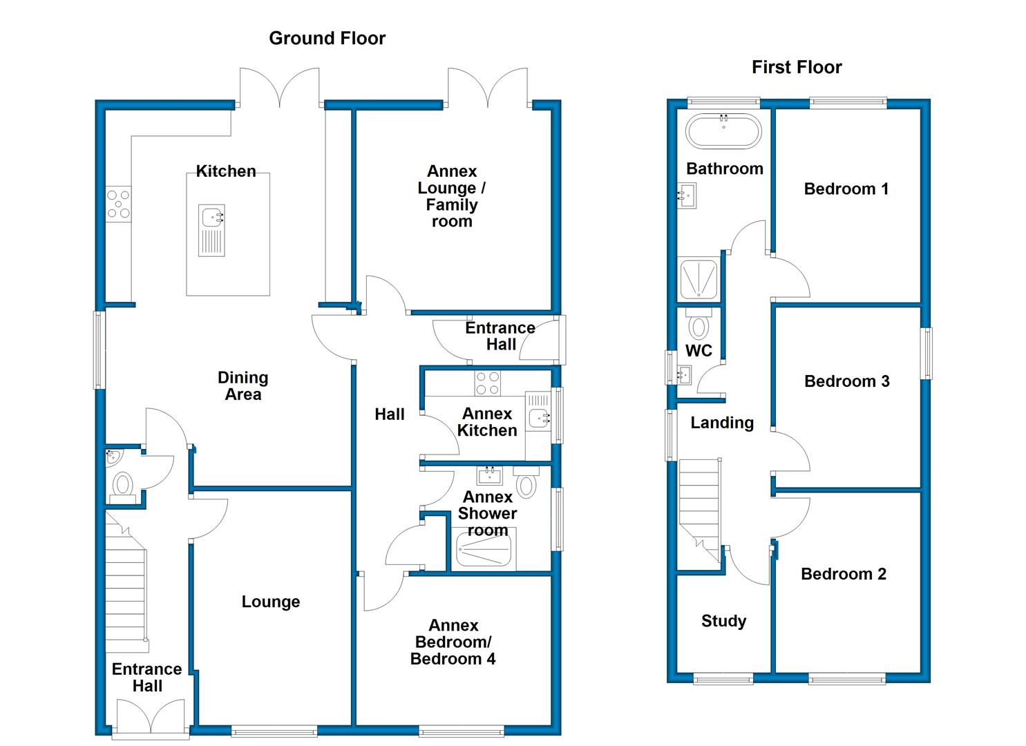 Separate Wc adjacent to main bathroom and additional downstairs Wc