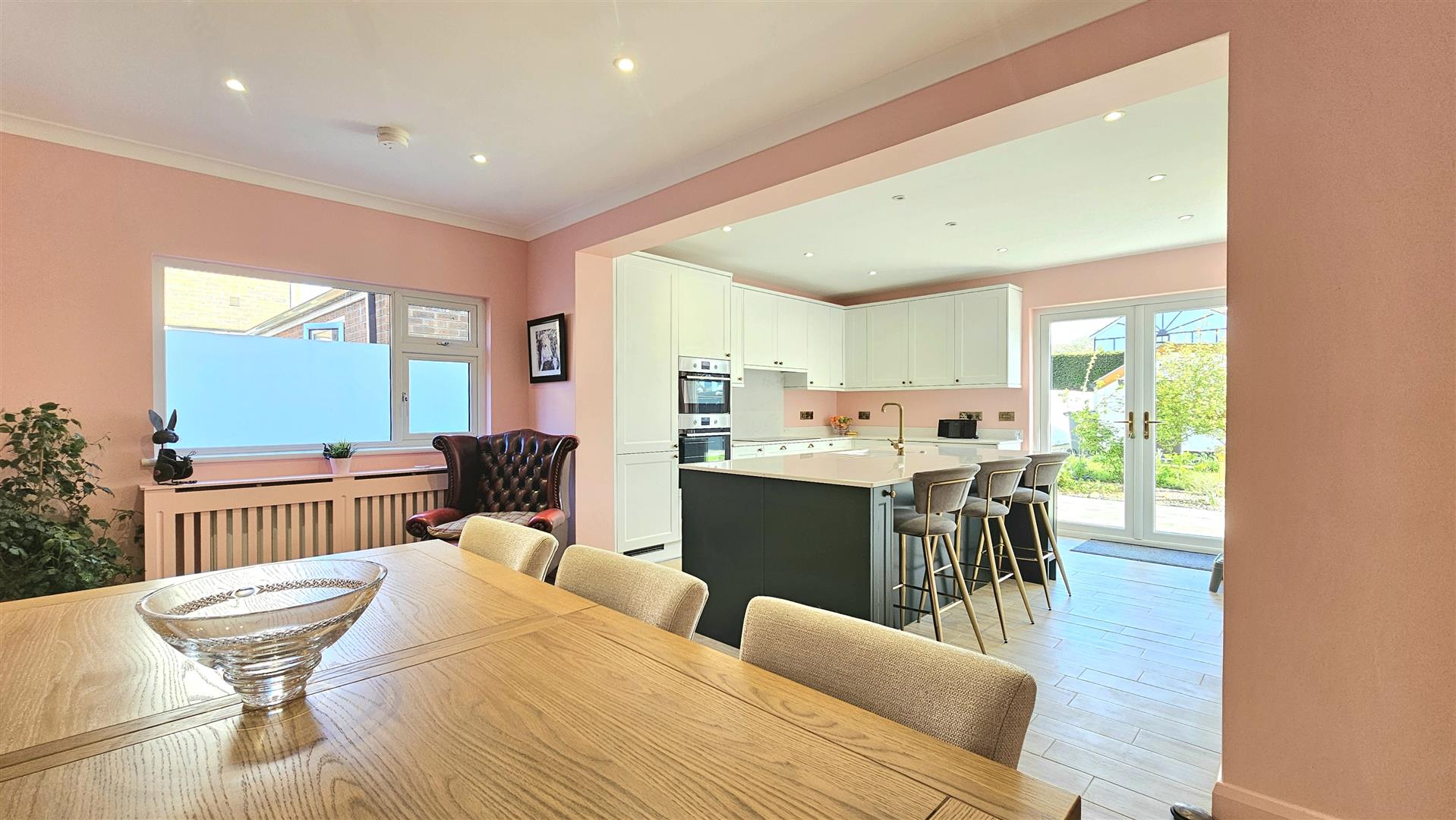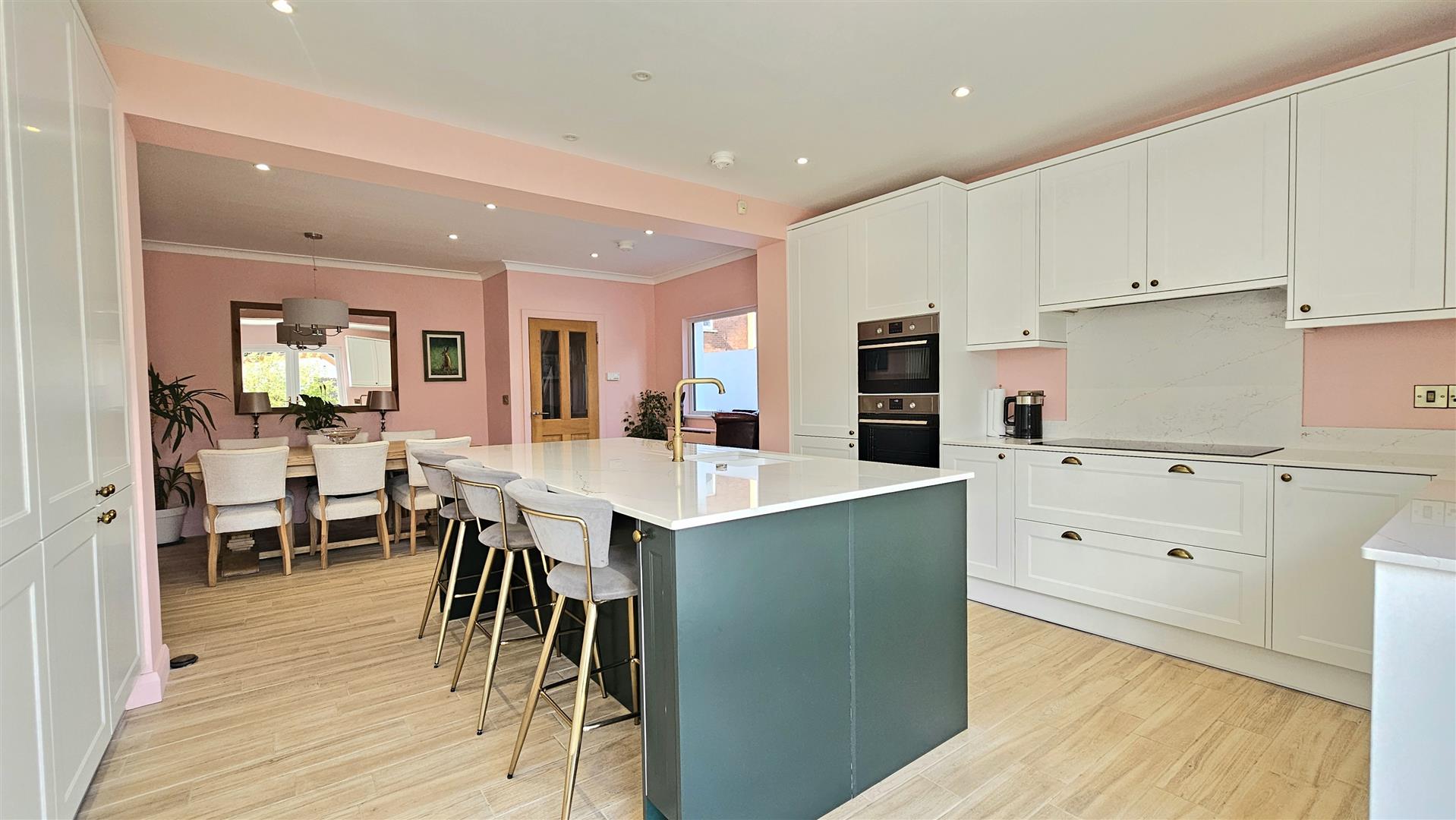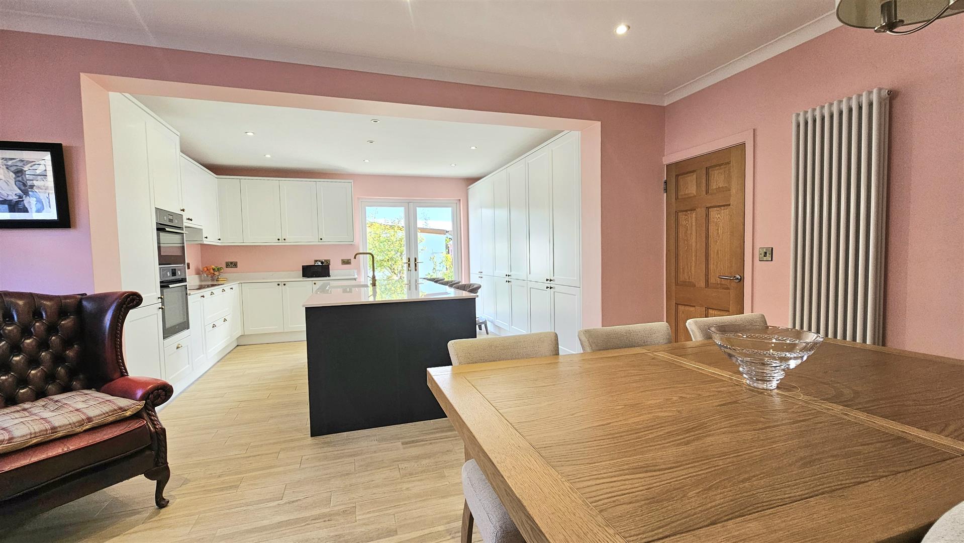 The main house provides well proportioned accommodation including four bedrooms and adaptable reception space, centred around an impressive 24' x 15'7 kitchen which is open plan to a dining area and fitted with an extensive range of units, Silestone worktops and a breakfast bar, along with a range of integrated appliances. Double doors open directly to the rear garden, while the family bathroom is finished in a contemporary style with a freestanding bath and separate shower, complemented by a separate WC and an additional downstairs WC.