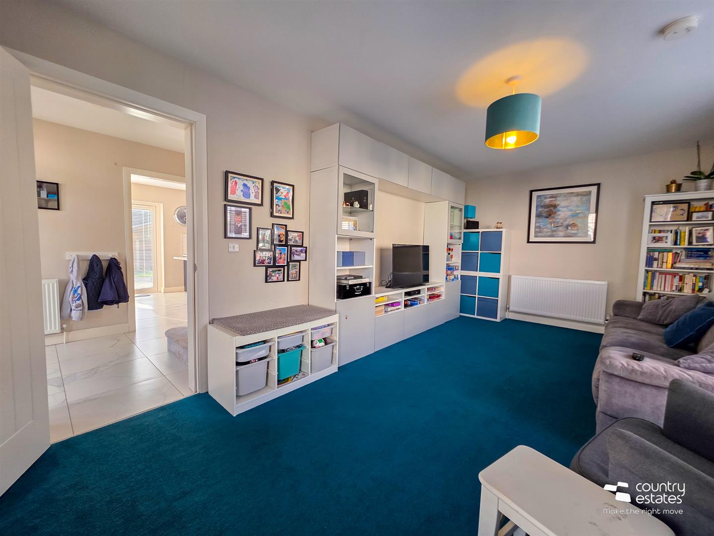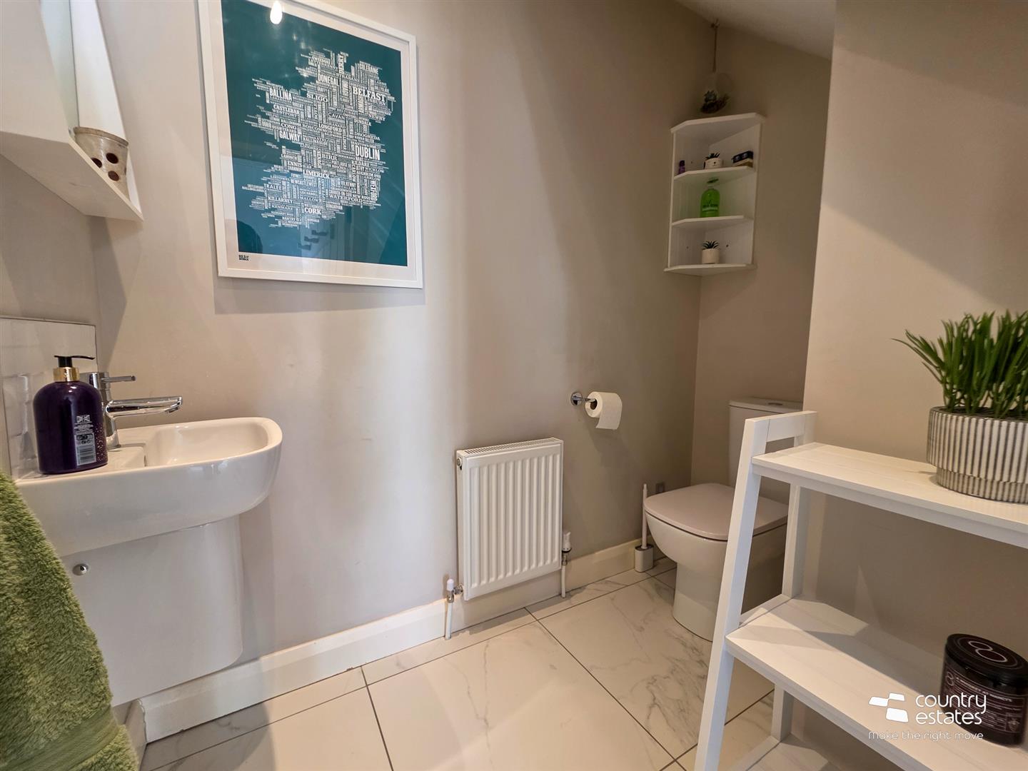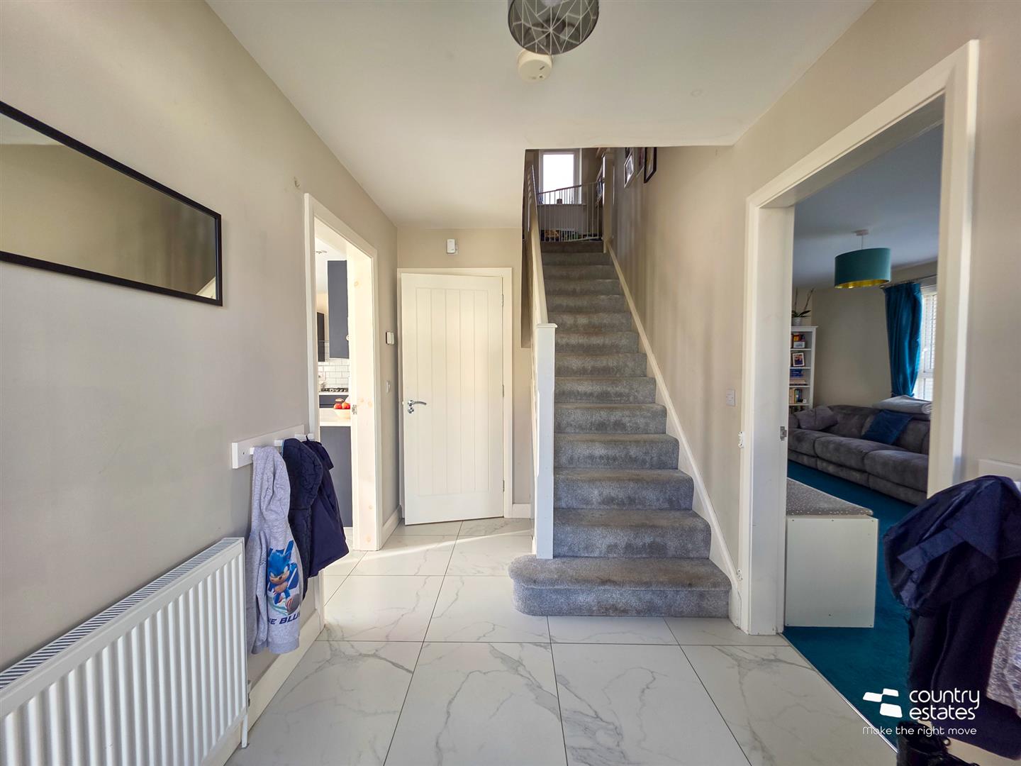 Composite front door with PVC double glazed side screens into spacious well presented entrance hall with marble effect ceramic floor tiling extending into kitchen. Under stairs storage.