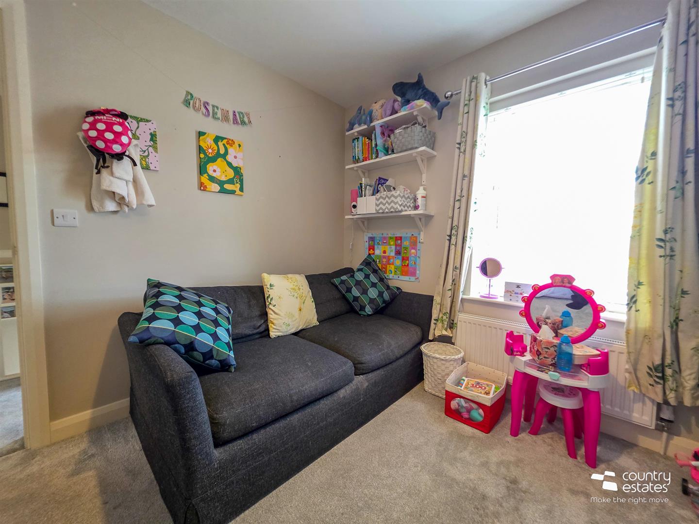Private enclosed garden to side, laid in lawn, screened by perimeter fence. Paved patio area and walkways.