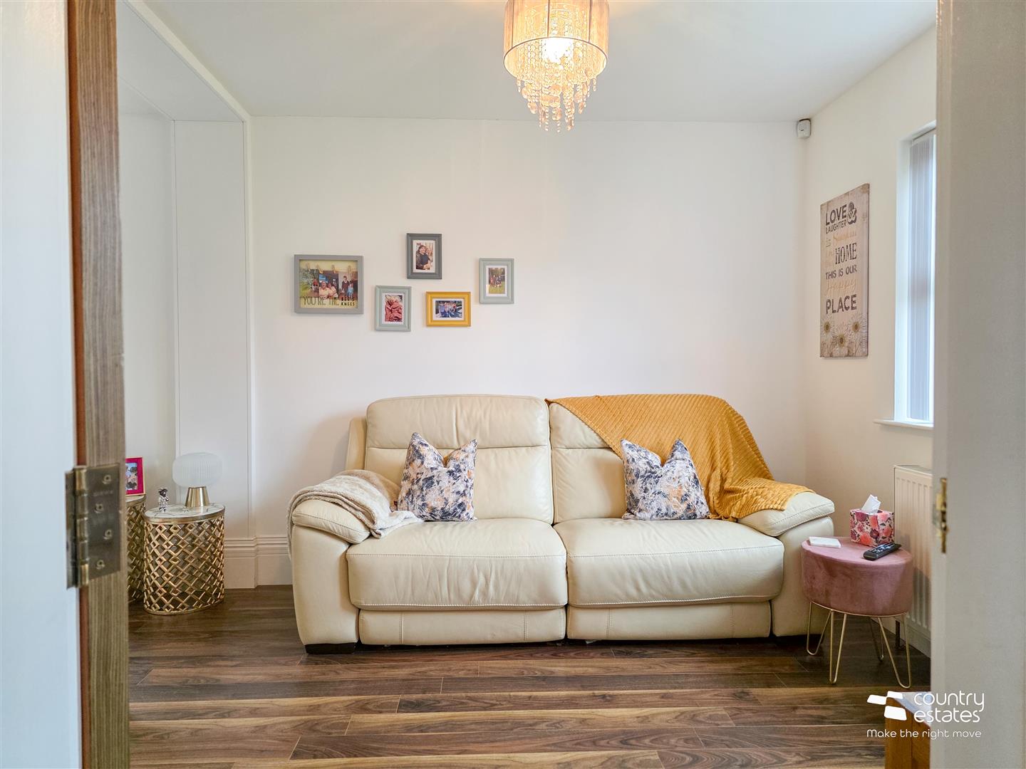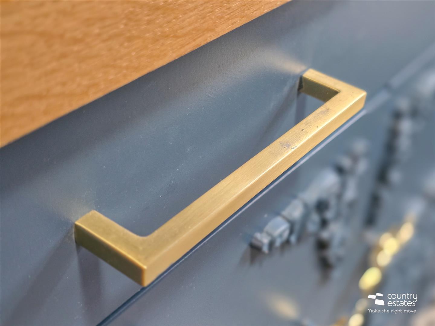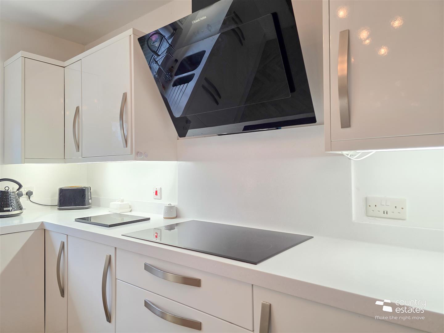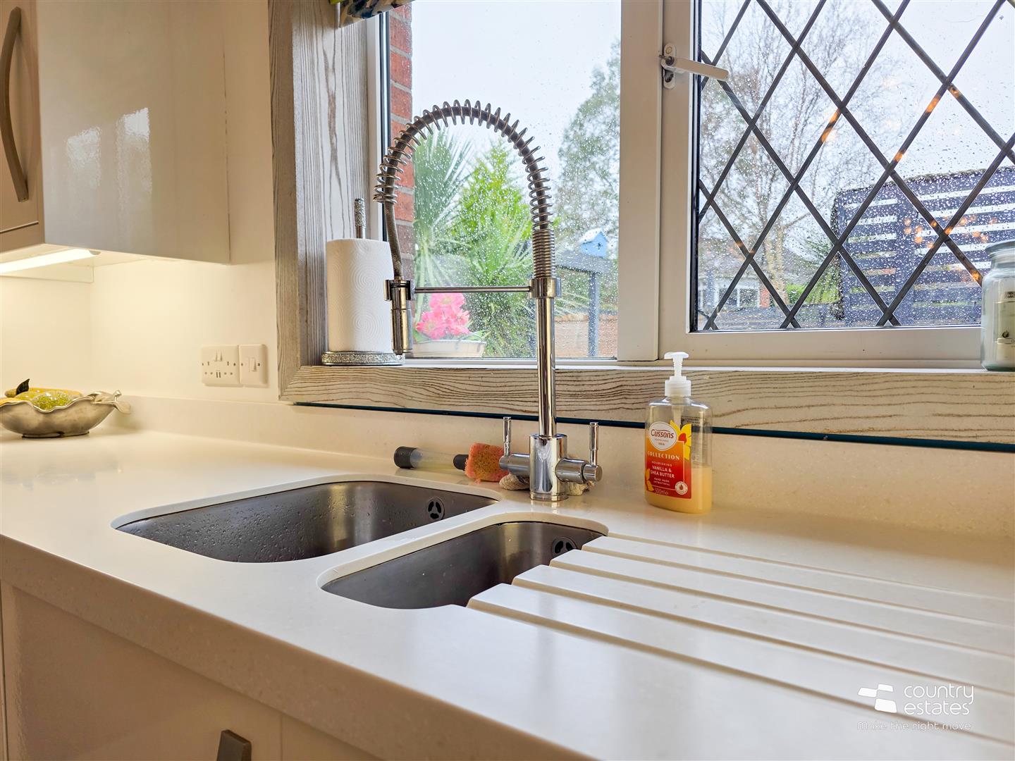 Equipped with high level gloss units and contrasting work surfaces. Plumbed for washing machine. Space for tumble dryer. PVC Double glazed door to rear garden.