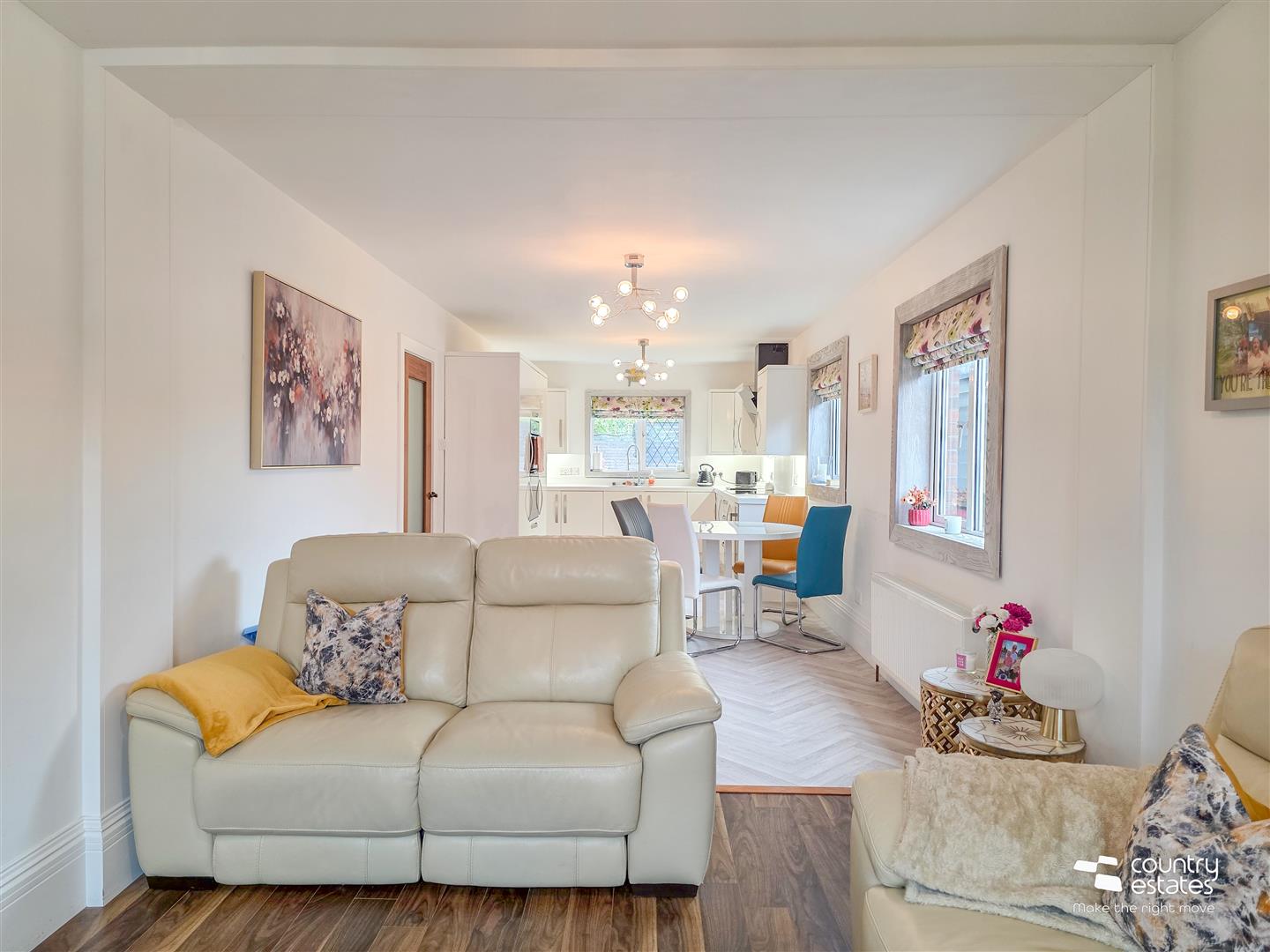 At widest points. Quality laminate flooring. PVC double glazed front door to rear decking.