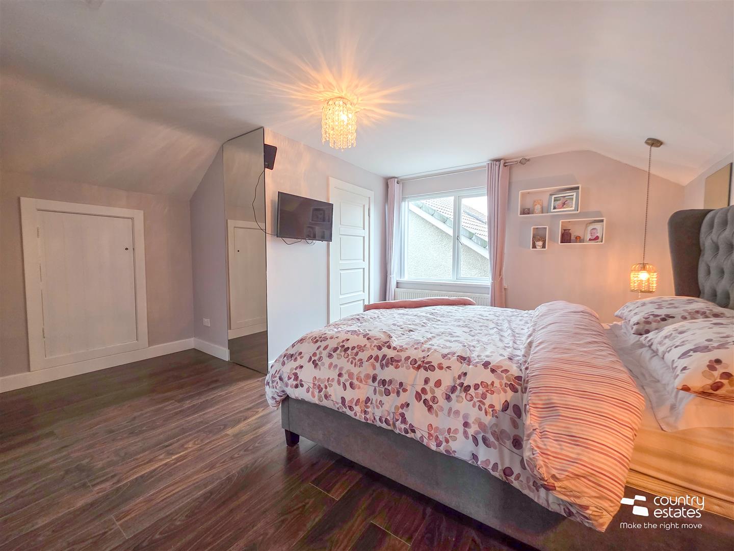 A stunning detached chalet bungalow, ideally positioned within a quiet cul-de-sac just off the Woodburn Road, Carrickfergus. Within walking distance to a host of local amenities. Maintained to a very high standard and offering a flexible living arrangement with self contained ground floor comprising spacious lounge, open plan kitchen/living/dining space with contemporary fitted kitchen, separate utility, luxury bathroom suite and a bedroom with ensuite shower room. The first floor enjoys two well proportioned bedrooms with ensuite off Master bedroom. Externally the property enjoys a neat well maintained lawn to front with parking to side and a private fully enclosed hard landscape garden to rear for easy maintenance with large decking area. Ideally suited a variety of purchaser, an early viewing is highly recommended.