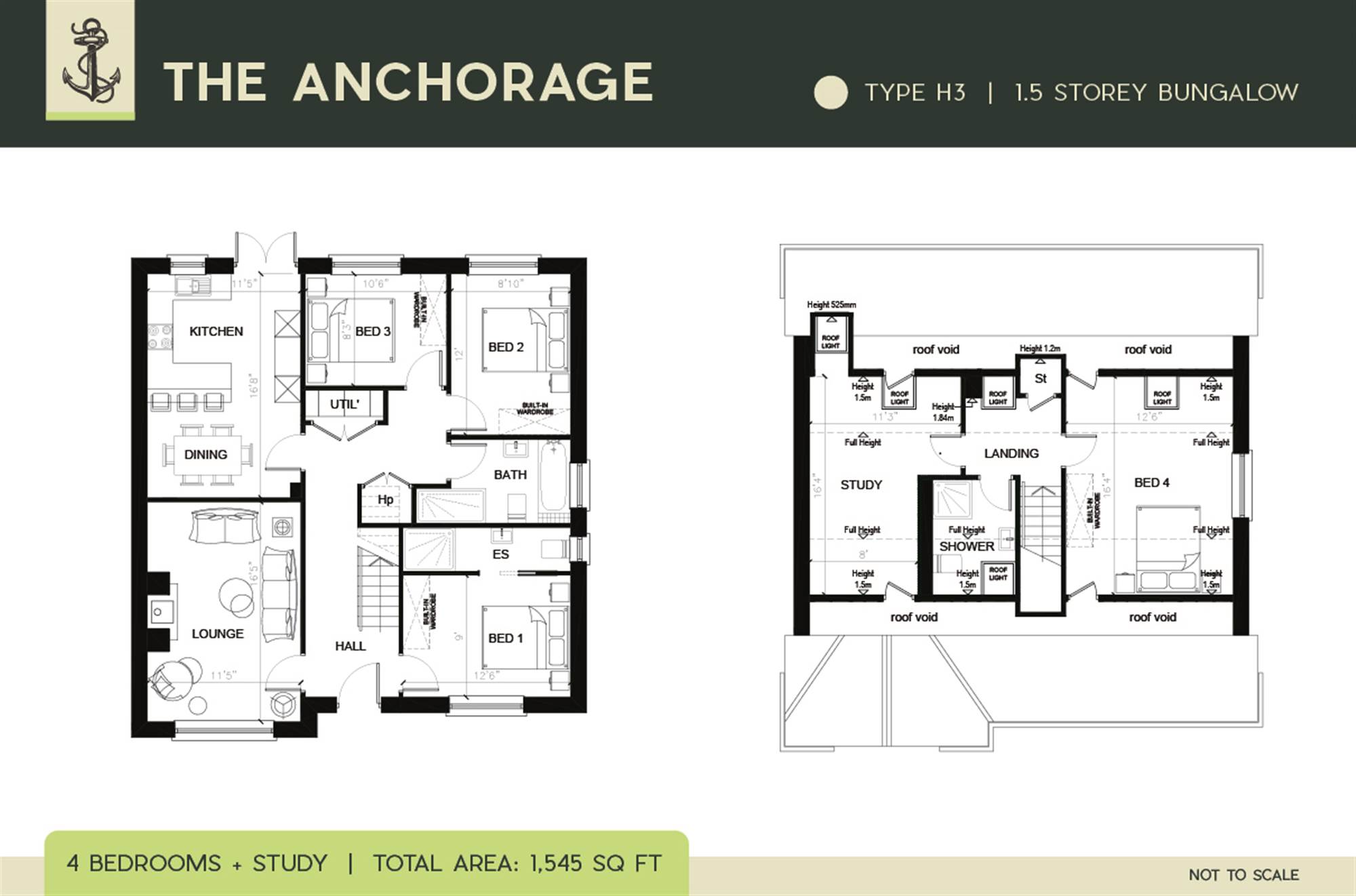 Mariners Rest consists of a range of three bedroom semi detached homes with sunrooms and detached bungalows with 3 and 4 bedroom options available. All properties offer separate living rooms, open plan kitchen/dining rooms and master bedrooms with en suites. The 4 bedroom detached bungalow also offers an additional shower room and study on the first floor.