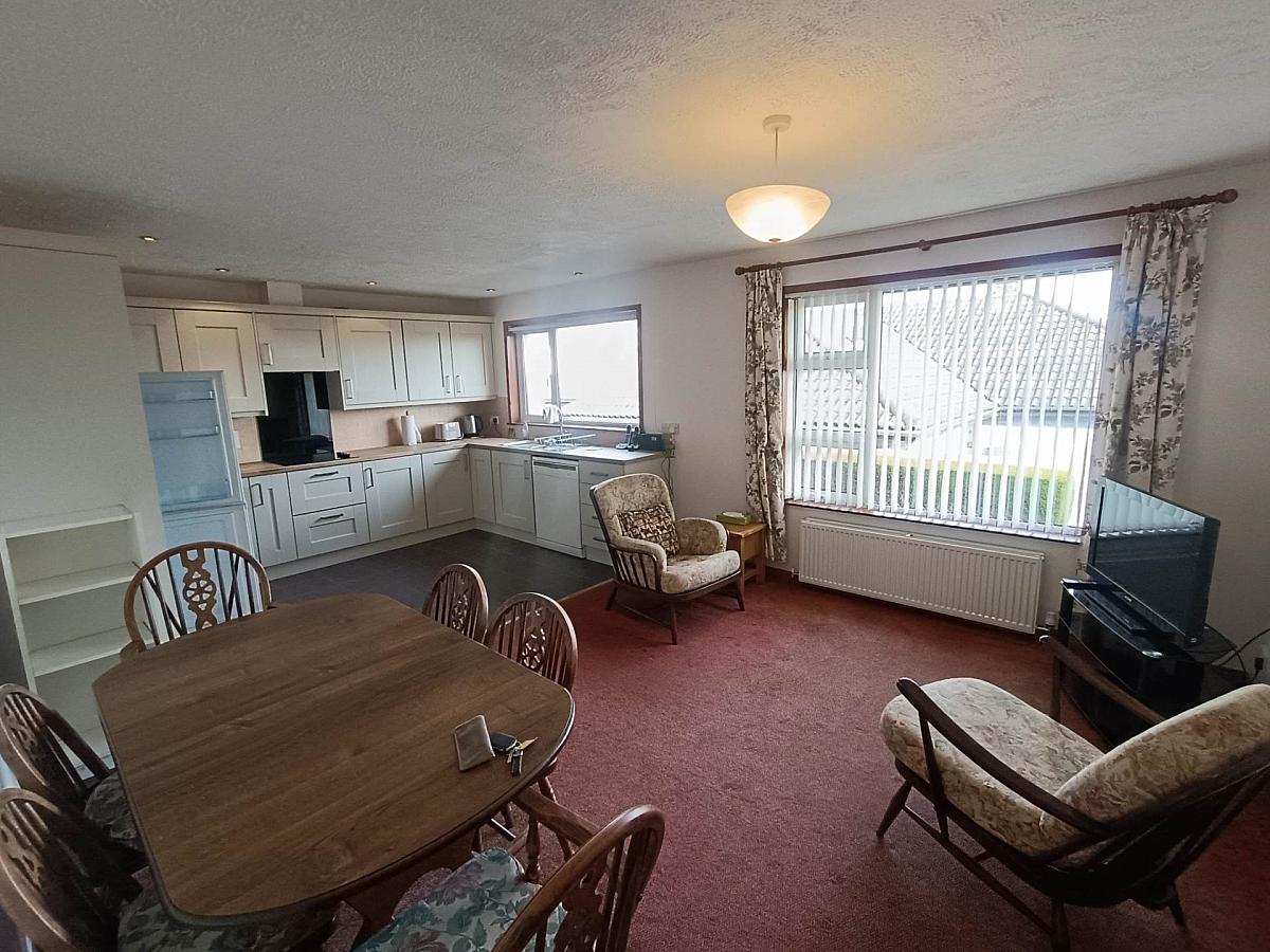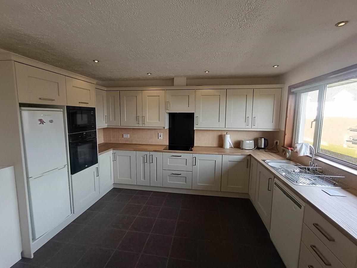 Recently fitted kitchen with oven and hob and dining area with far reaching views