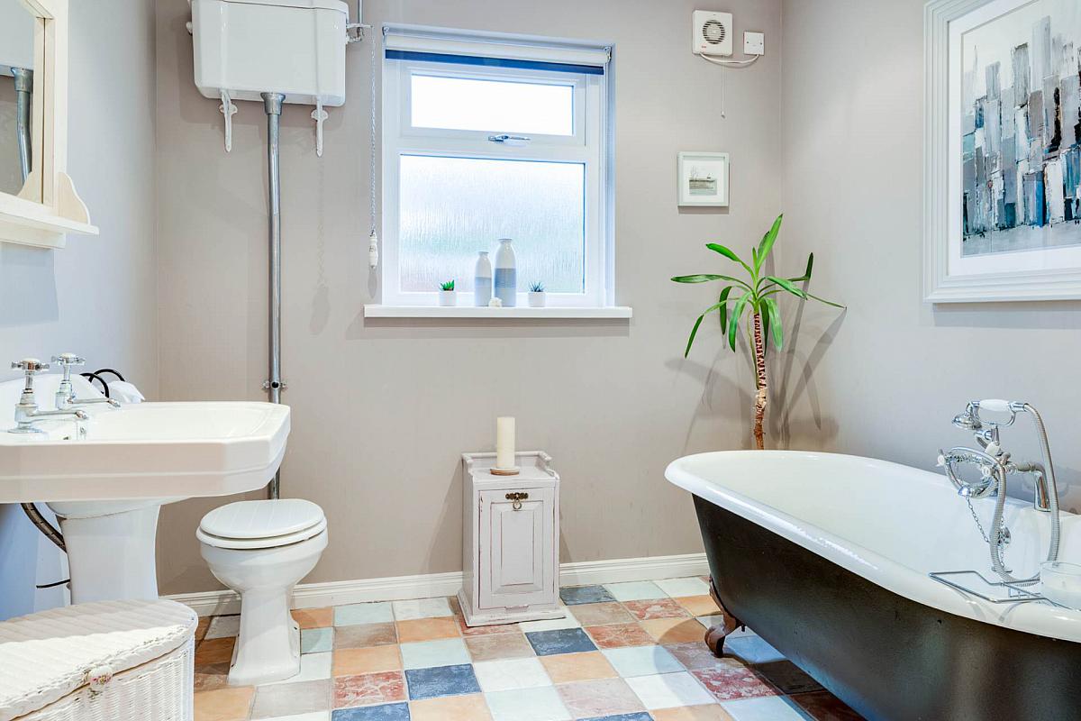 Family bathroom with feature roll top, claw ball foot bath - Separate shower room on first floor