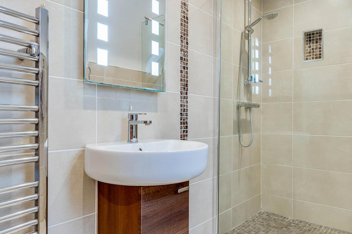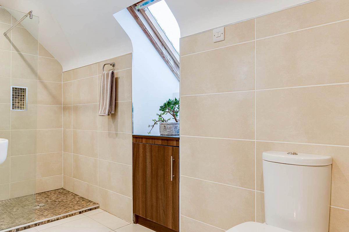 Separate shower room with tiled walk in shower cubicle