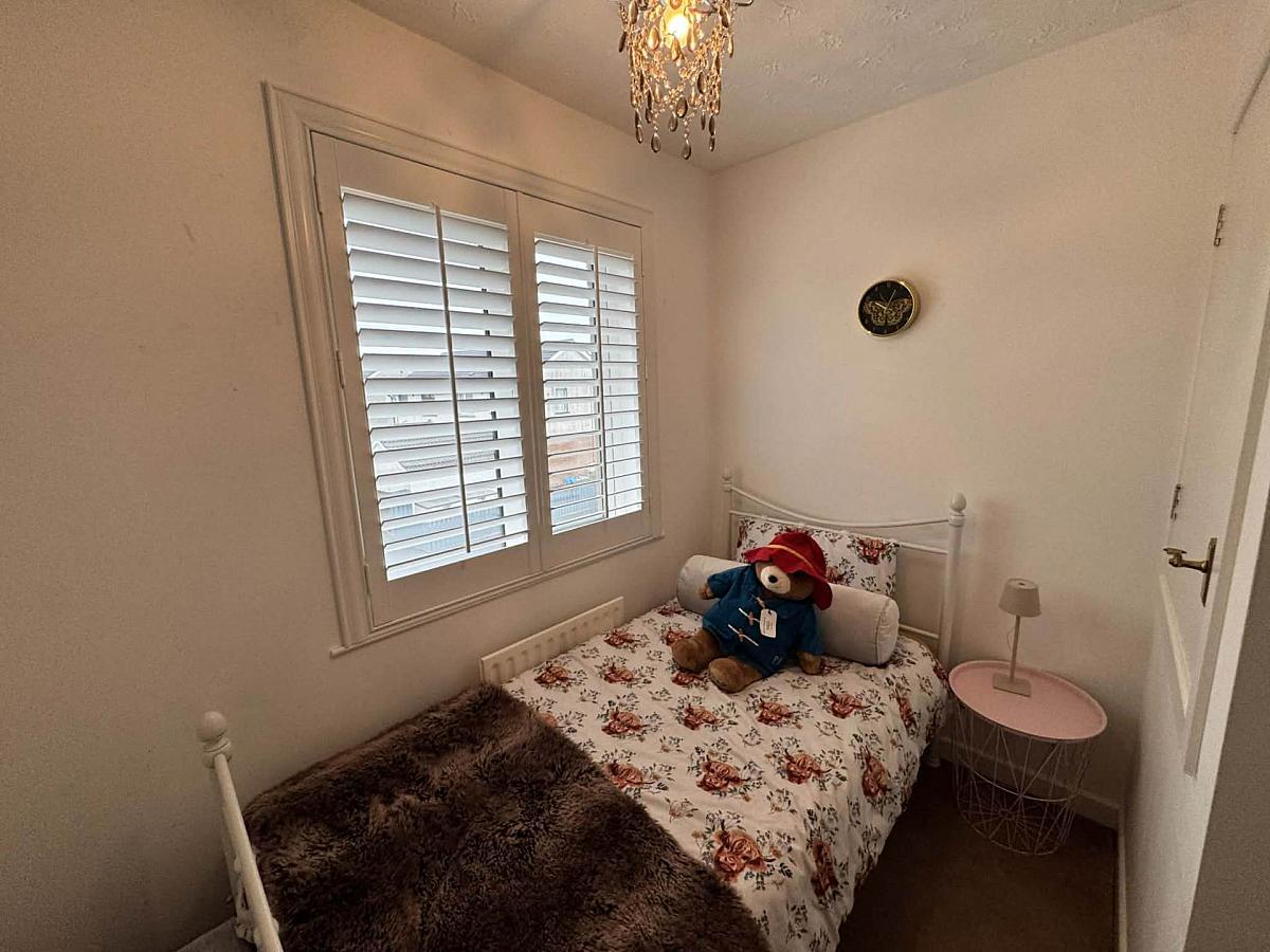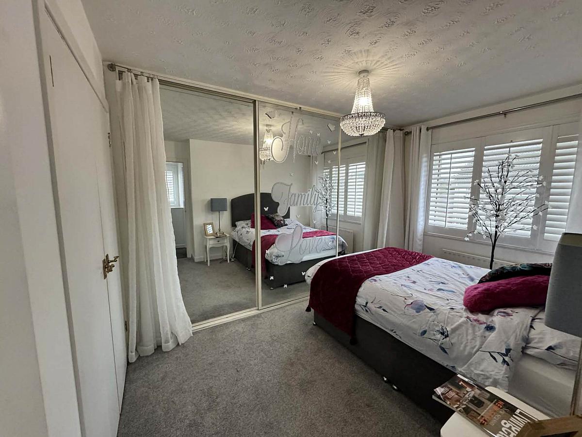 Wall to wall built in robes with mirrored sliding doors. Double built in wardrobe. Fitted window shutters.