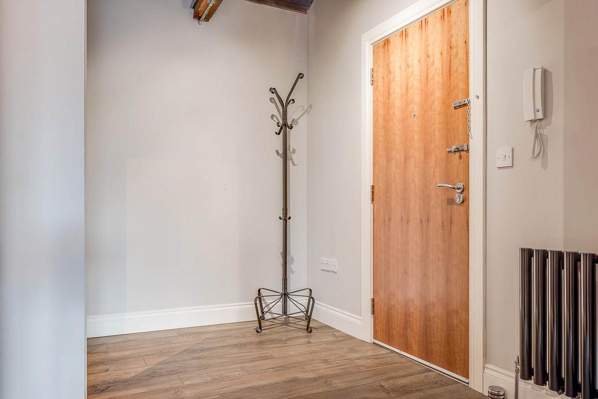 Exposed timber and beamed ceiling. Intercom lock release security system. Cloaks/storage cupboard.
