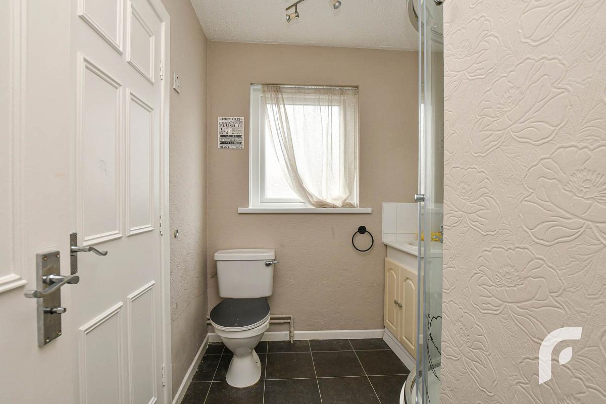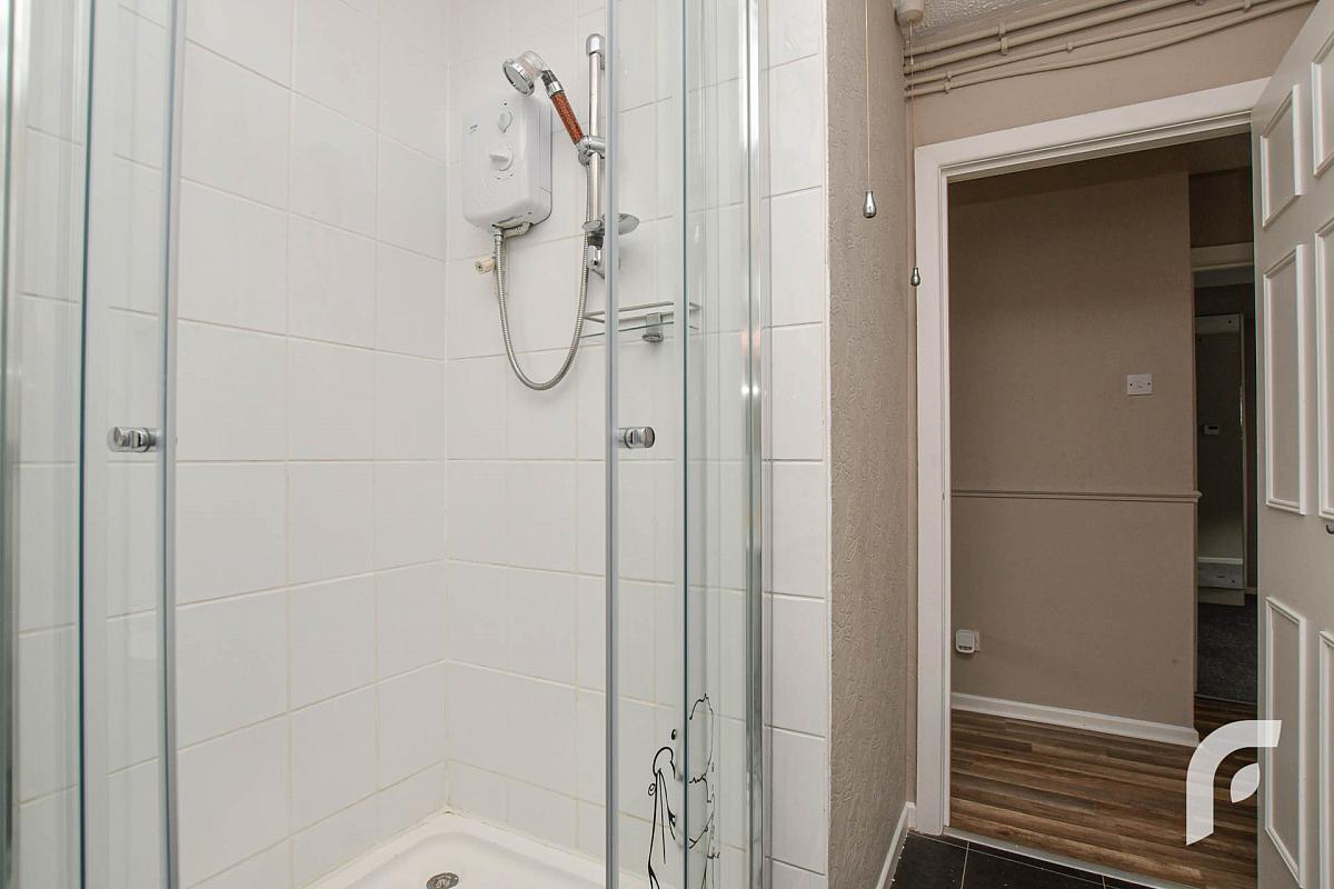 Bathroom - 8'4' x 6'5' - three-piece white suite with corner shower.