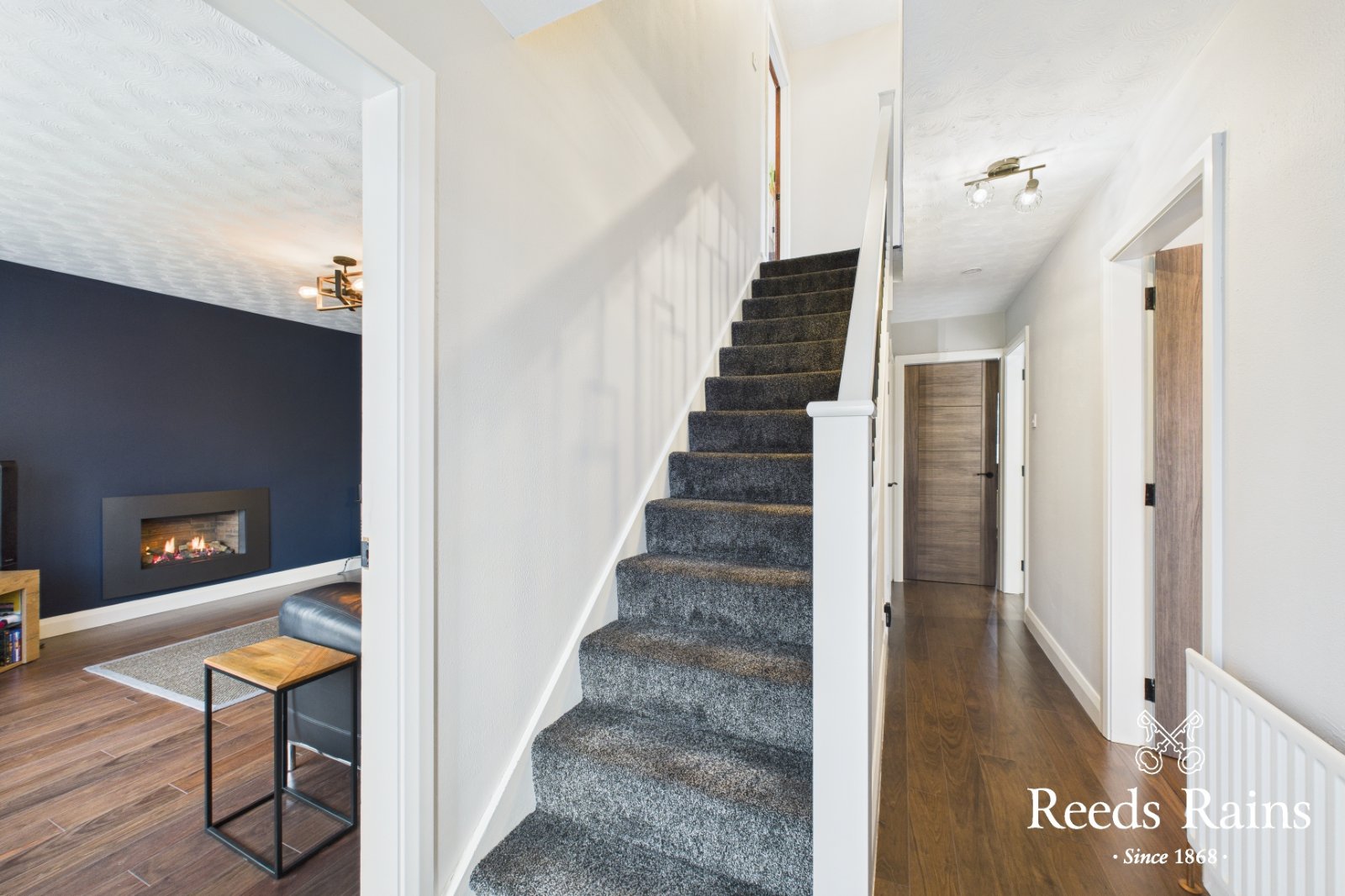 Feature gas fire inset. Semi solid flooring.