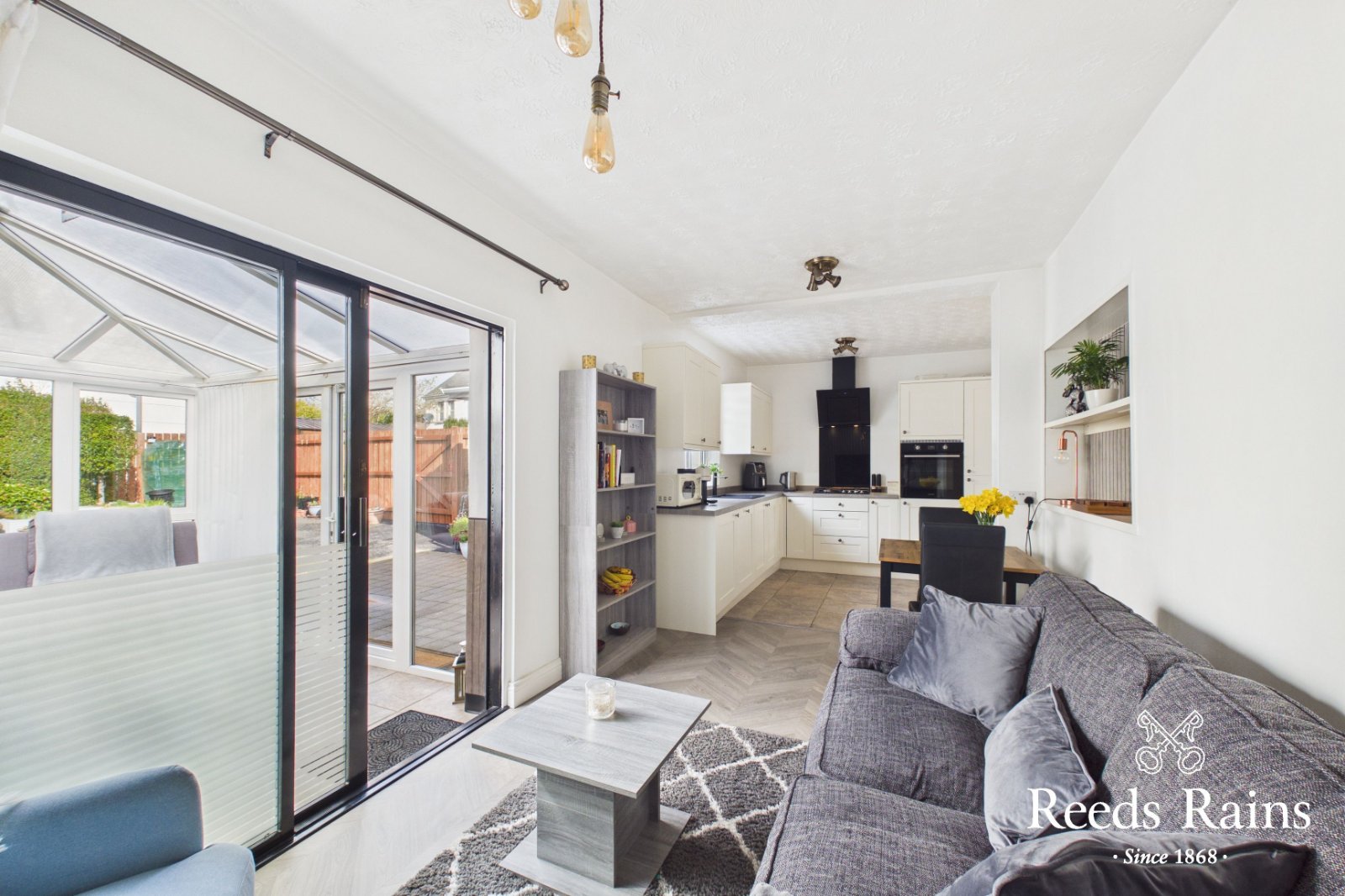 Excellent range of fitted high and low level units. One and a half bowl sink unit with mixer tap. Built in hob and eye level oven. Extractor fan. Double glazed patio doors to conservatory. Tiled floor.
