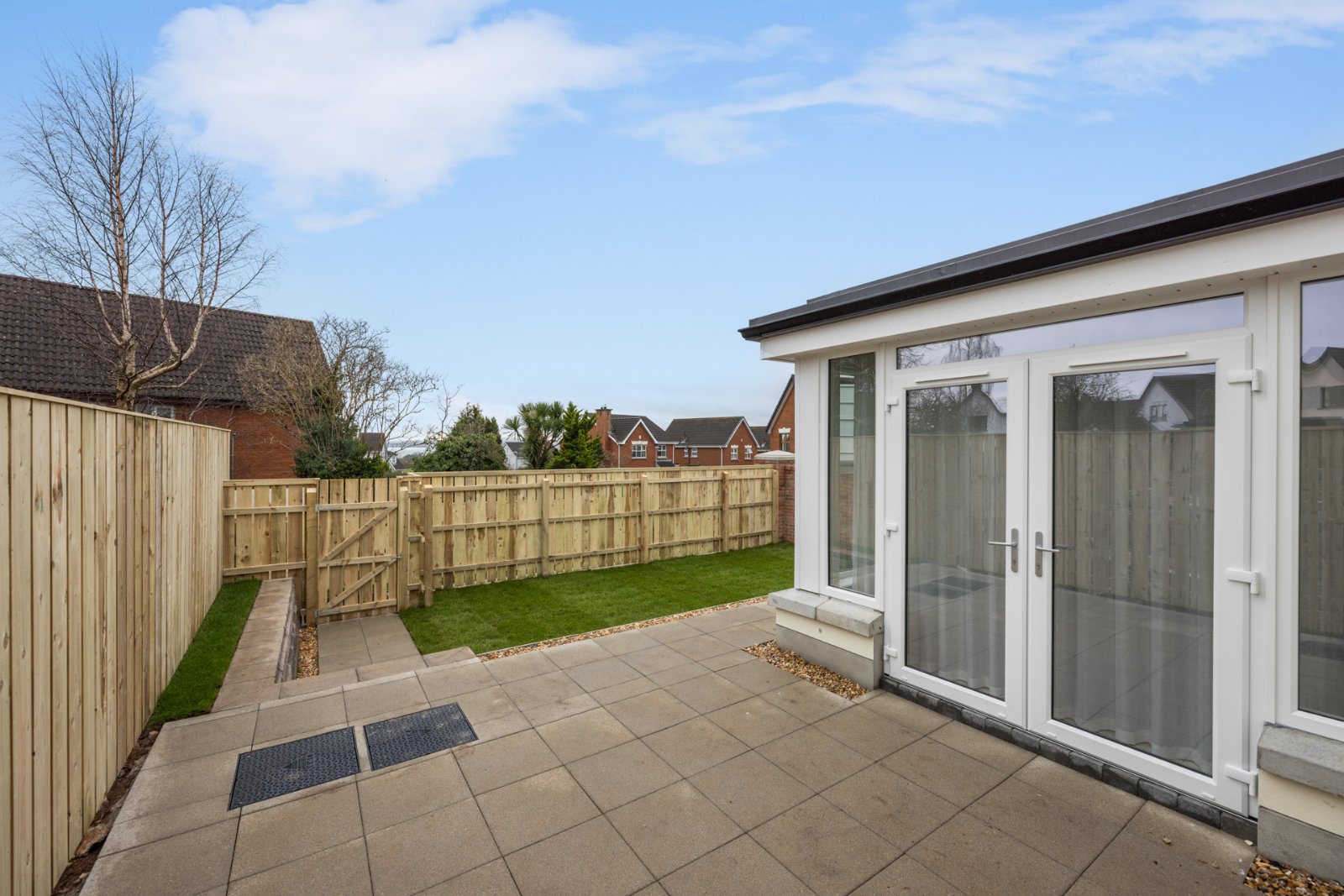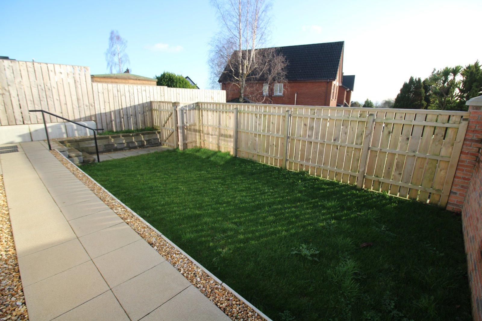 Rear enclosed garden in lawns. Access to driveway. Paved patio area.