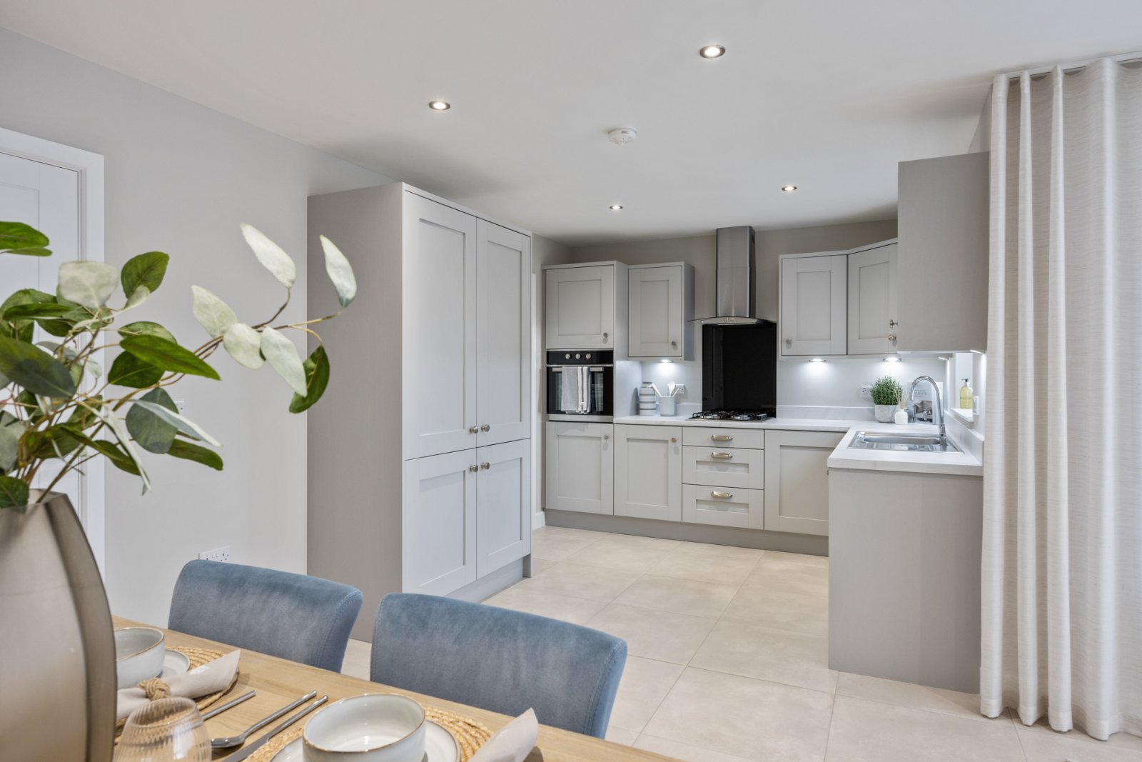 Excellent fitted kitchen with range of high and low level units with formica work surfaces. Single drainer stainless steel sink unit with mixer tap. Integrated fridge freezer and dishwasher. Built in gas hob and oven. Chrome extractor fan. Ceramic tiled flooring.