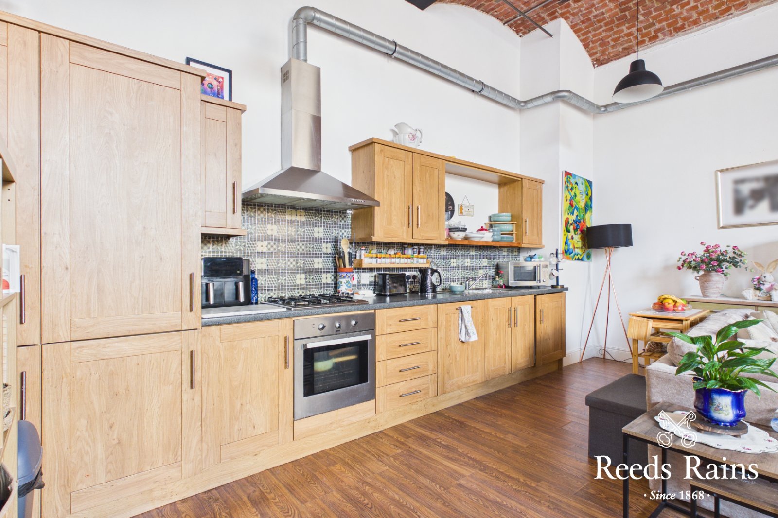 Range of fitted high and low level units. Built in gas hob and electric under oven. One and a half bowl stainless steel sink unit with mixer tap. Laminate wooden floor.