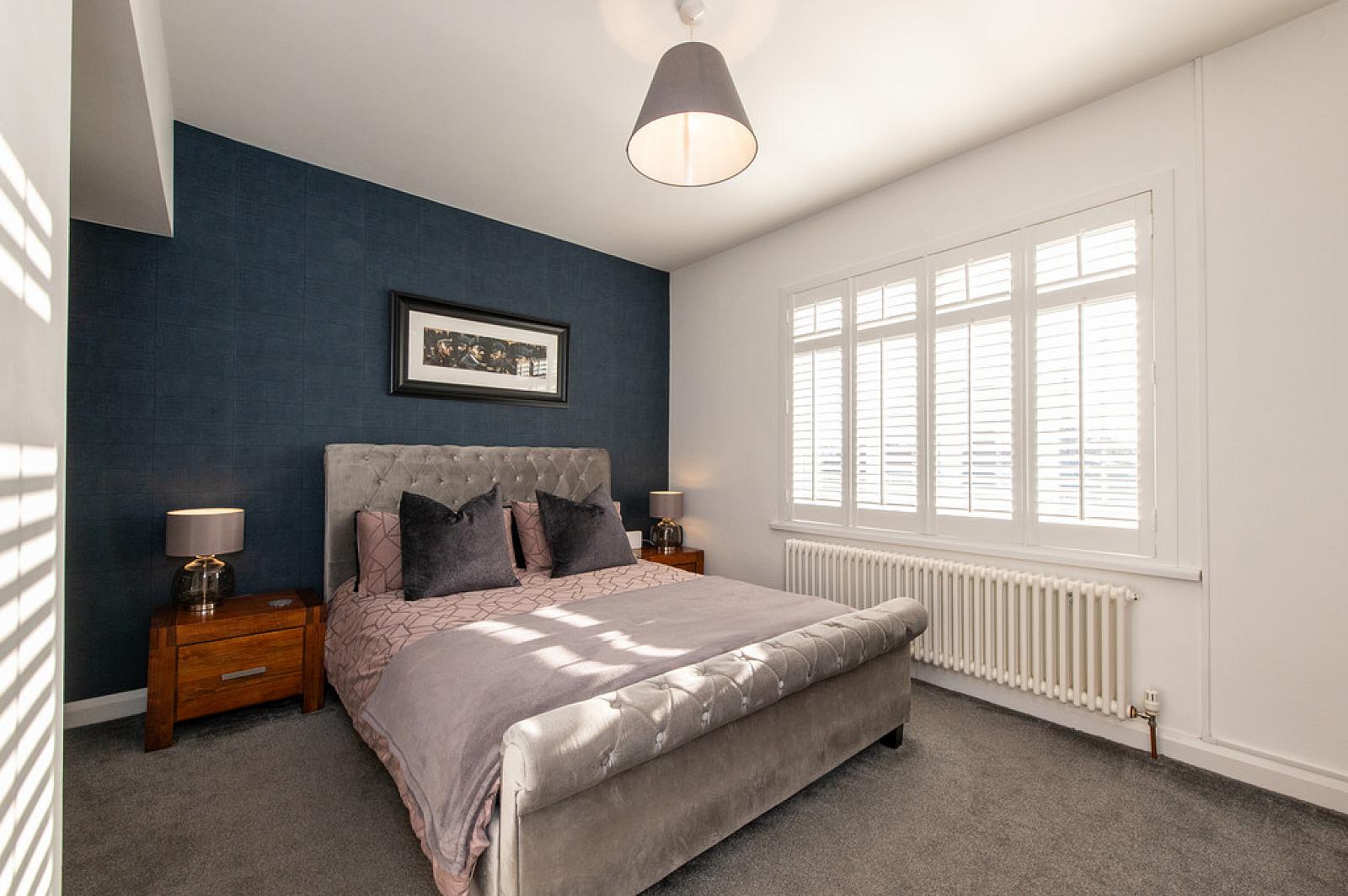 BEDROOM (1) 13' 2" x 10' 10" (4.01m x 3.3m) Plus built in slide robes, feature radiator, shutter blinds