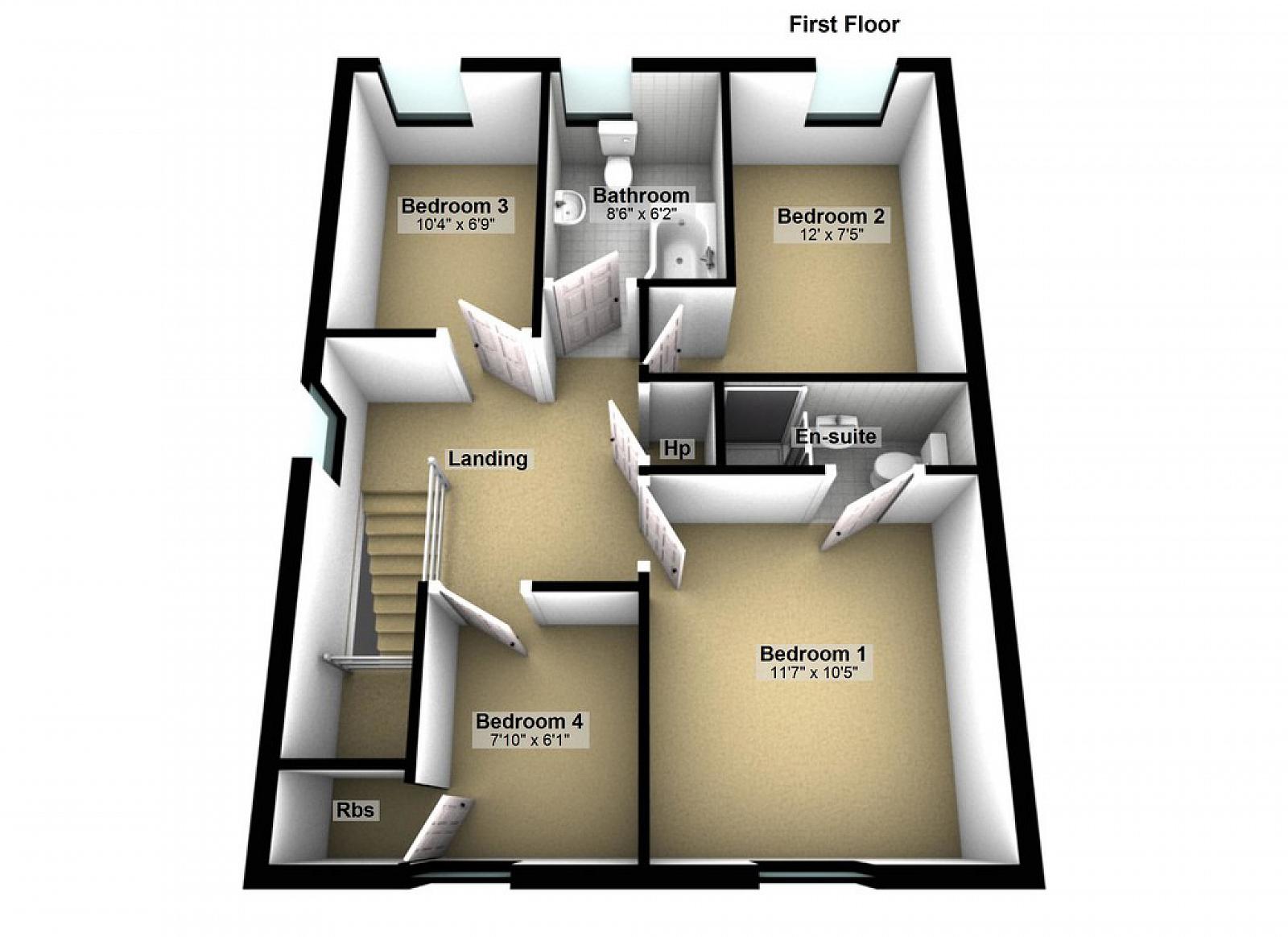 4 Bedrooms (1 ensuite shower room)