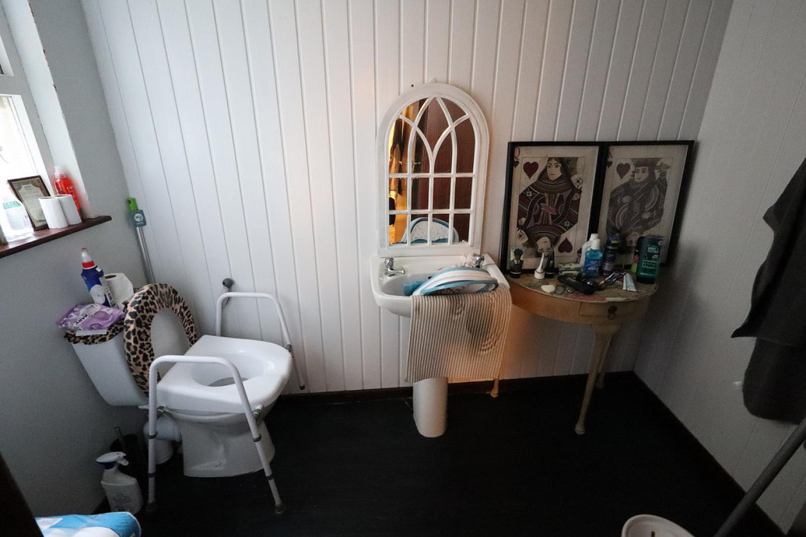 SHOWER ROOM Glazed shower cubicle, pedestal wash hand basin, low flush W/C, extractor fan