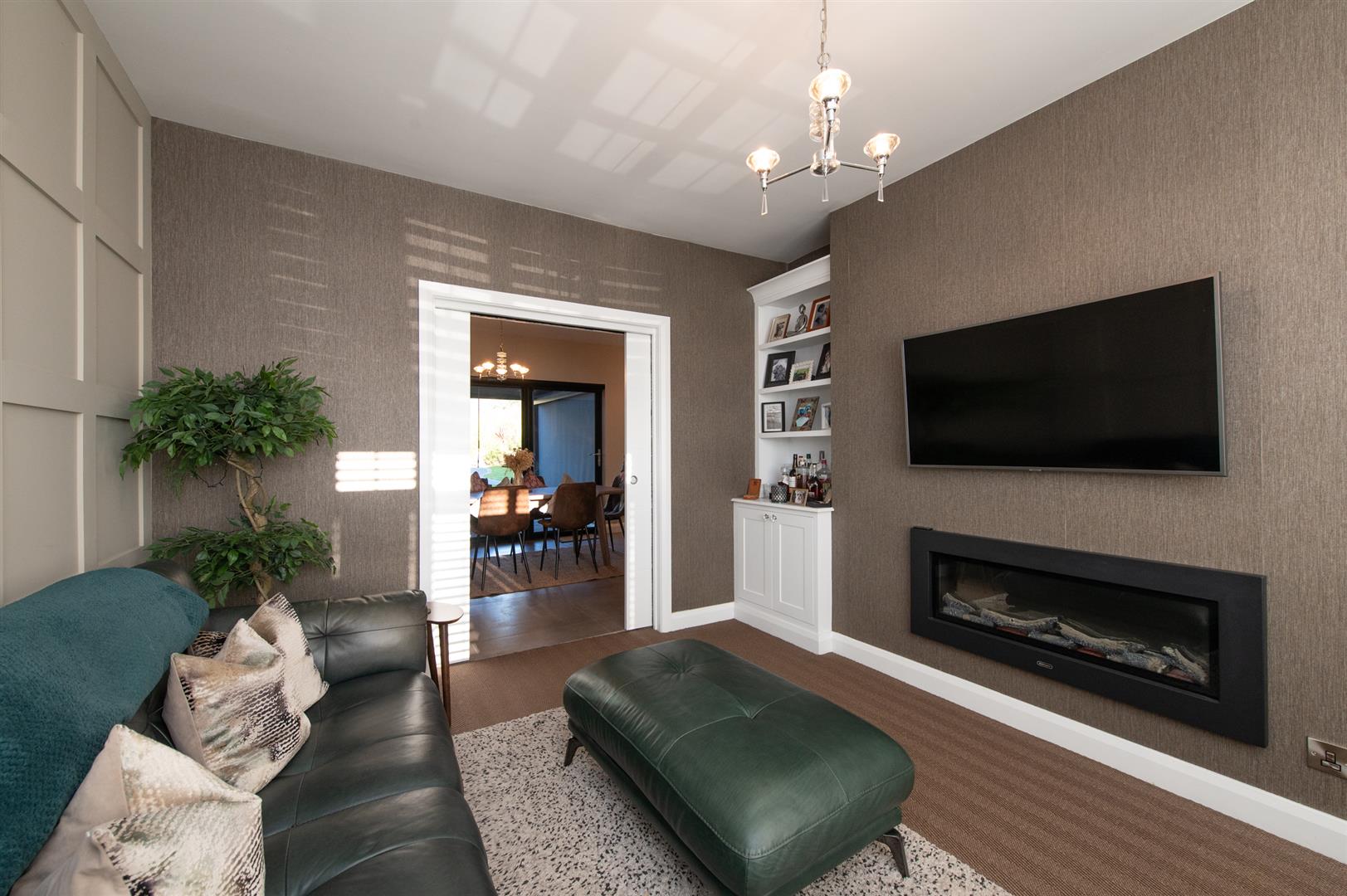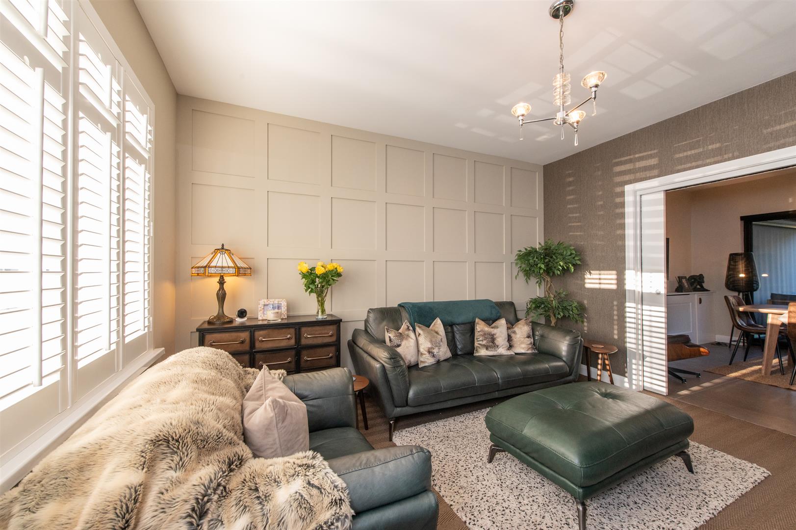 Feature panelling, electric fire, feature radiator, wired for flat screen, built in cupboards and shelving, sliding pocket doors, shutter blinds