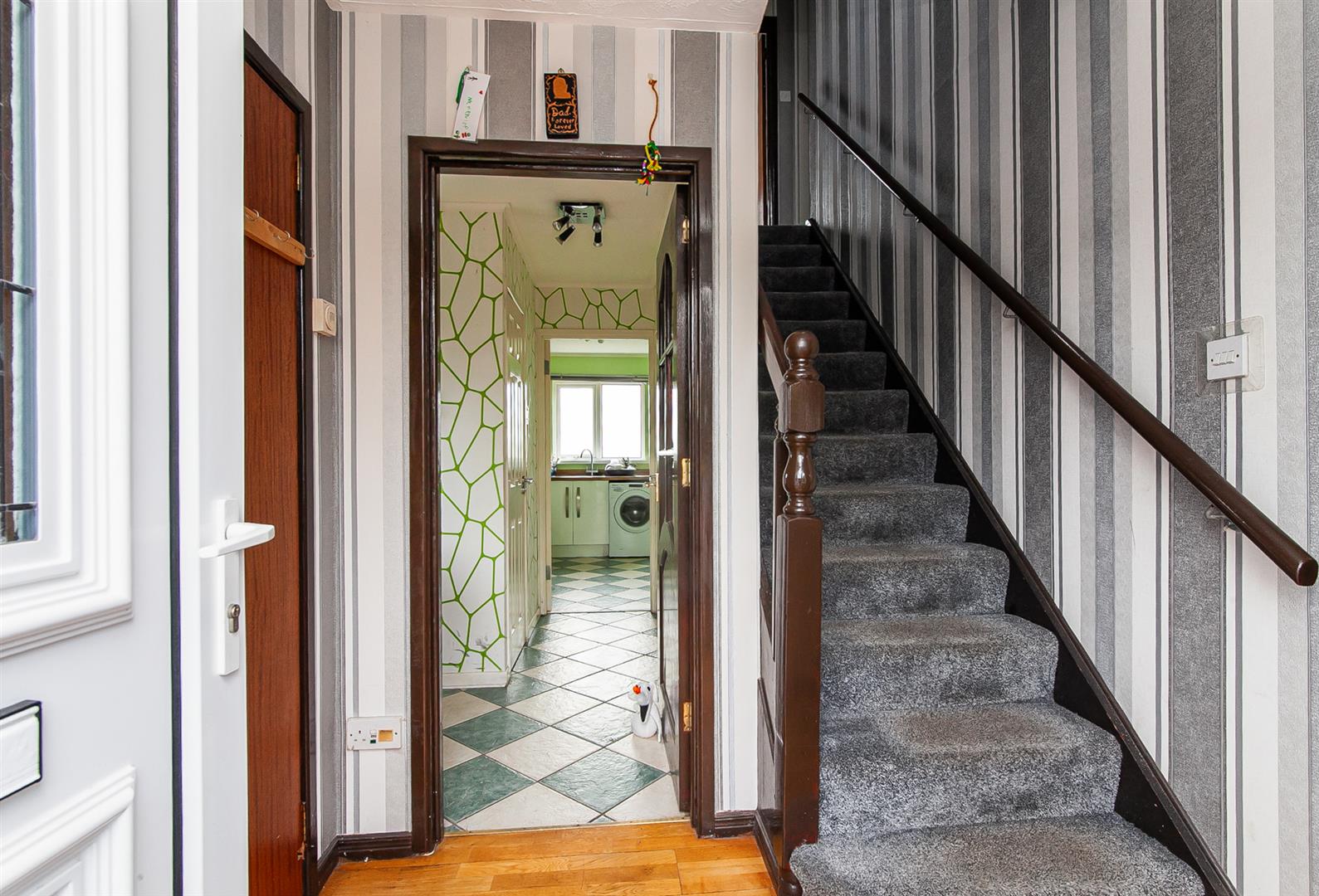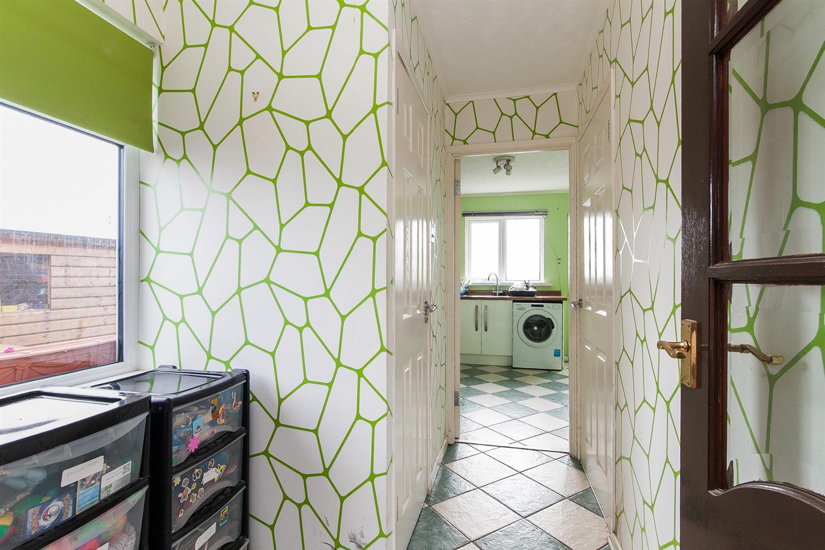 Tiled floor. Access to under stairs store.
