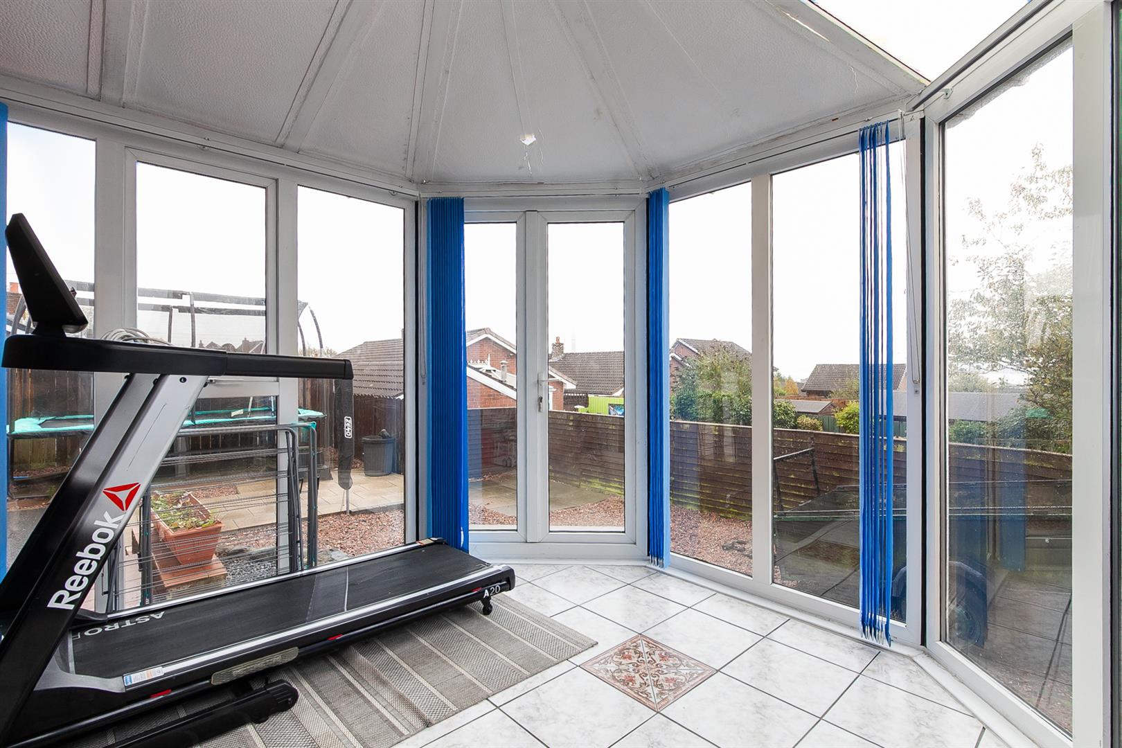 In PVC double glazed frame with matching French doors to rear garden. Tiled floor. View towards Belfast Lough.