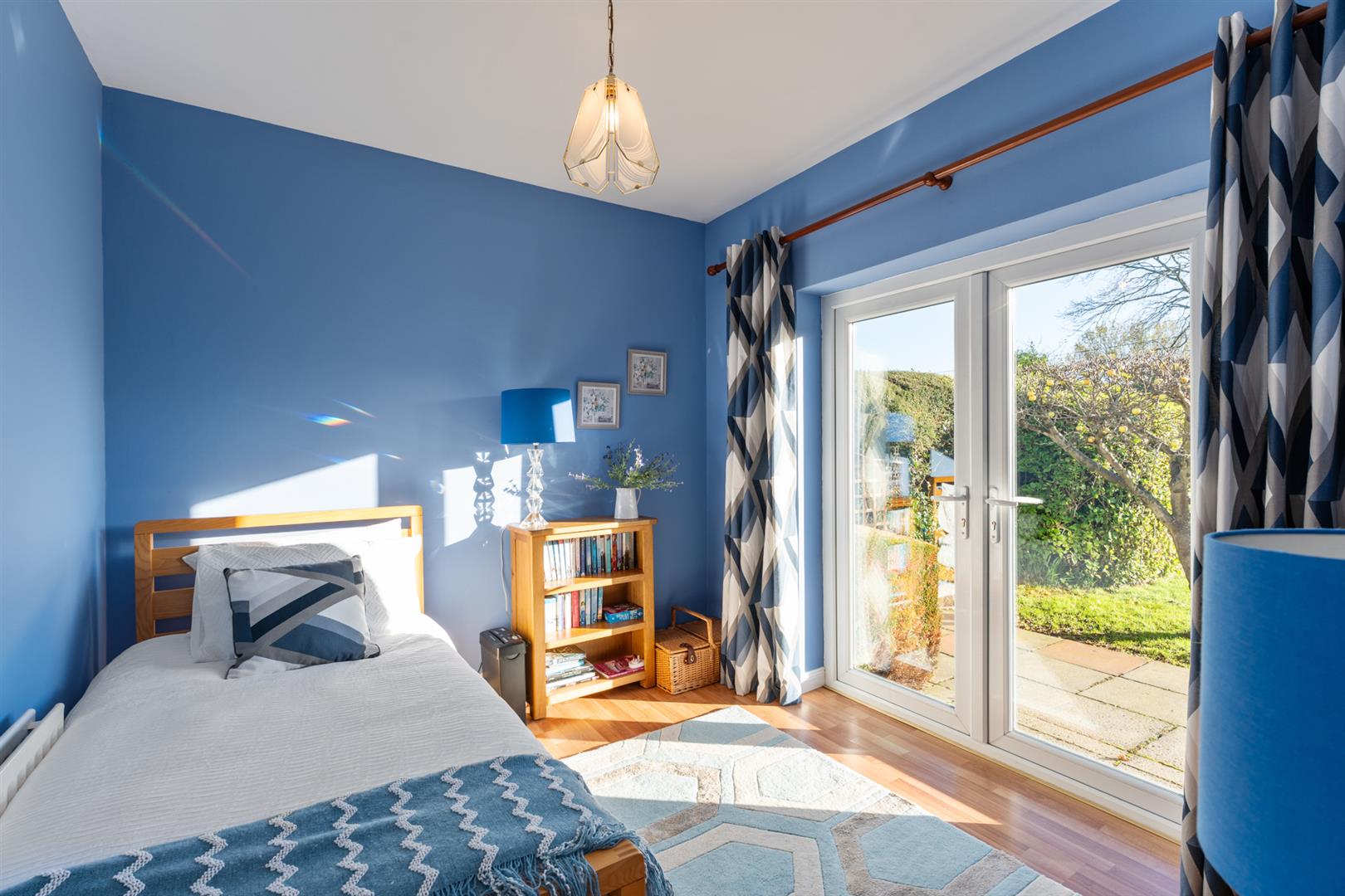 Wood laminate floor covering. PVC double glazed French doors leading to rear garden.