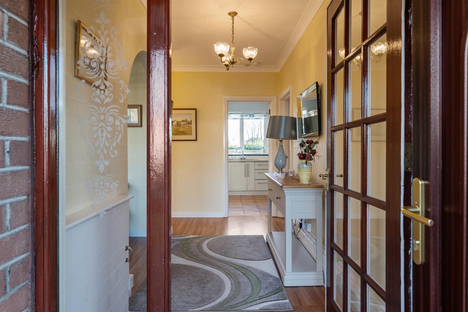 PVC double glazed front door with matching side screen Tiled floor. Glass panelled door with matching side screen leading to: