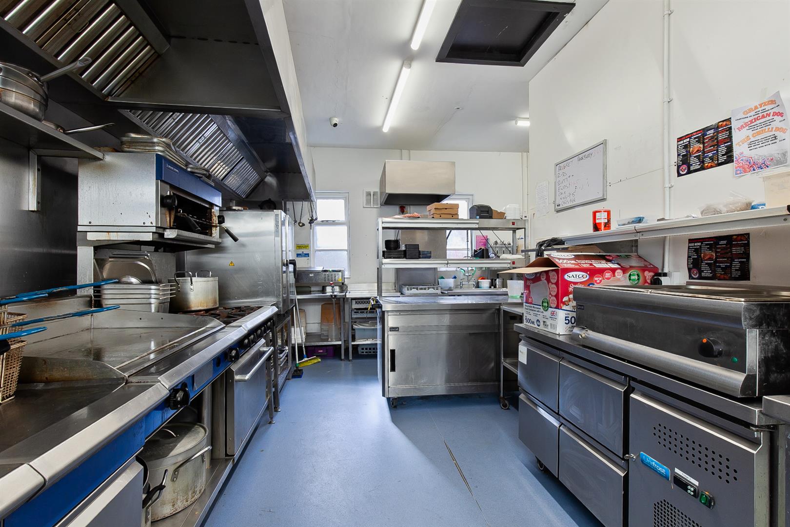 Part painted/part PVC panelling to walls. Tile effect lino floor covering. Twin windows to side elevation. Strip lighting and generous electrical specification. Kitchen equipment available to purchase via separate negotiation.
