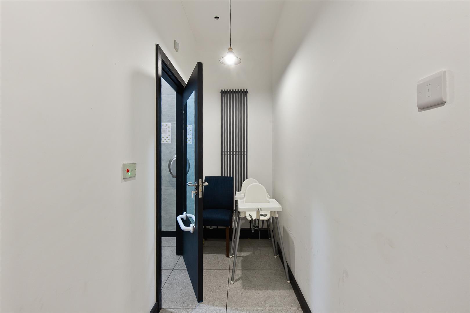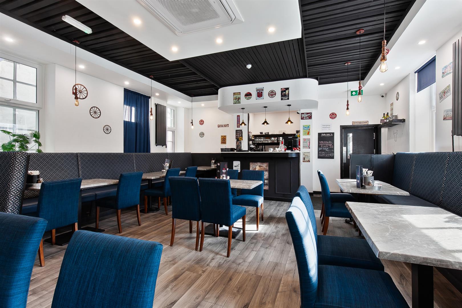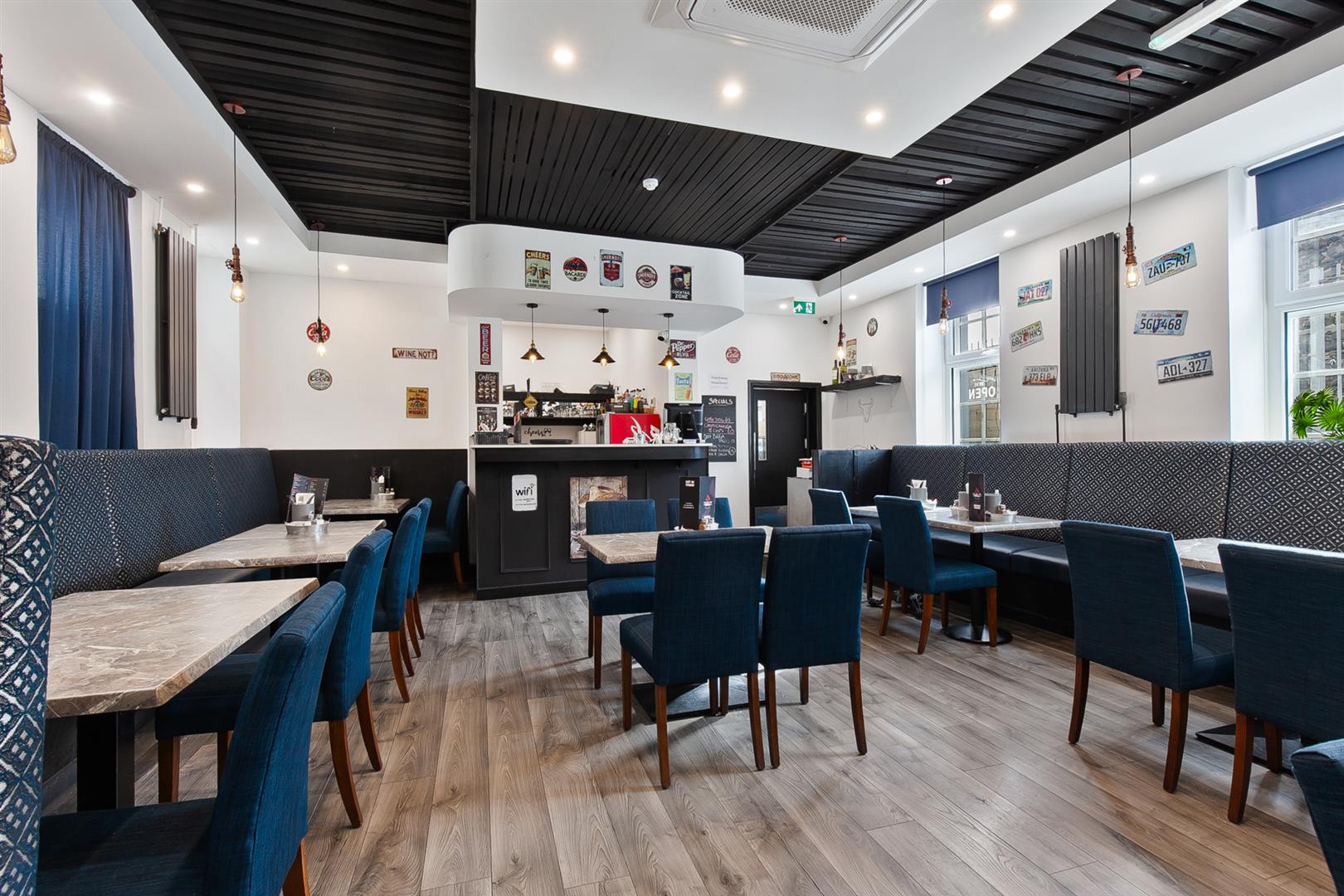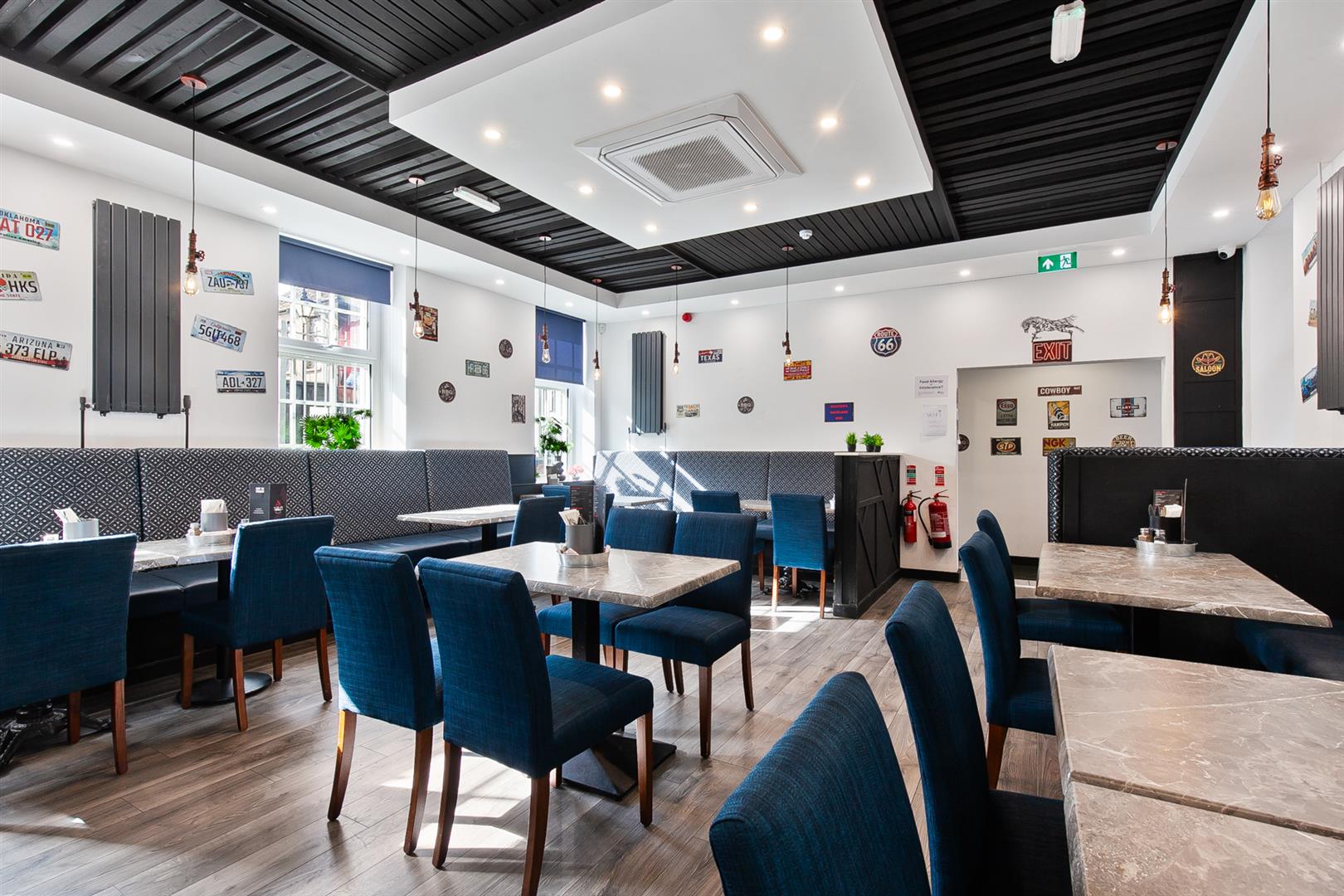 Painted and plastered walls. Dual aspect windows. Wood laminate floor covering. Part timber panelling to ceiling. Air conditioning unit inset to ceiling. Range of fitted and freestanding tables and chairs (available to purchase via separate negotiation). Open recess to:
