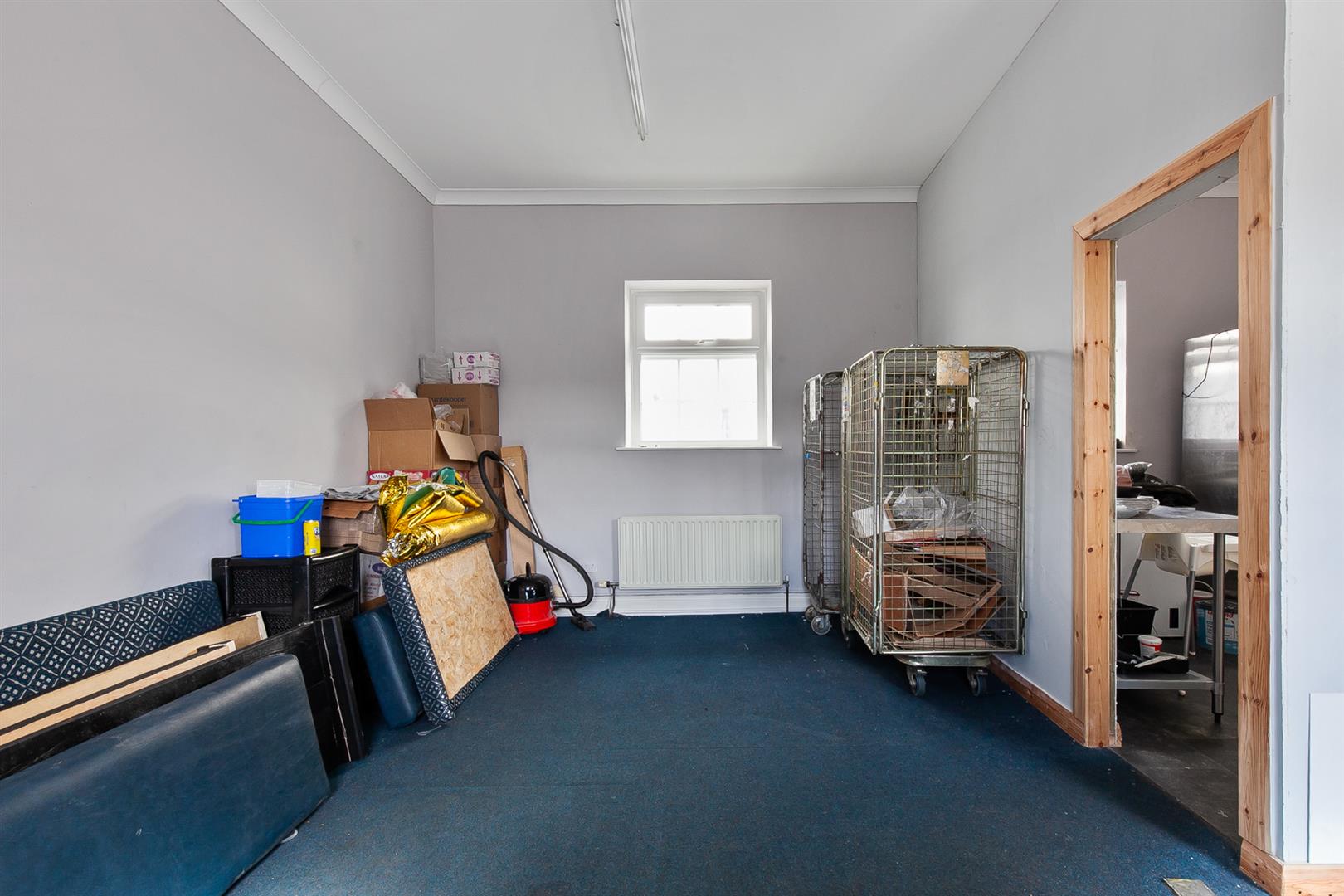 Plastered and painted walls and ceiling. Dual aspect windows. Strip lighting, power points and radiators. Carpet floor covering. Access into: