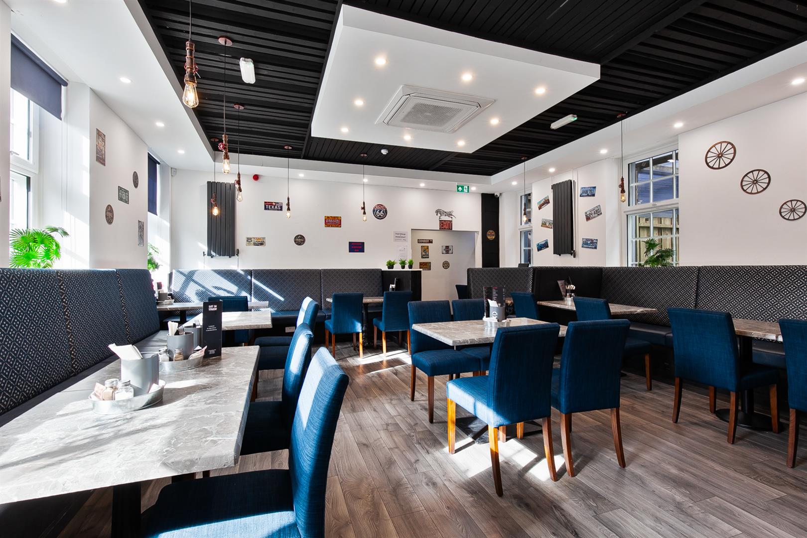 Vinyl floor covering and strip lighting. Painted and plastered walls. Option to purchase kitchen equipment to include cookers, preparation counters, hot plate, fridge and deep fat fryers via separate negotiation. Generous electrical specification. Gas fired central heating boiler. Fire exit door leading to service area.