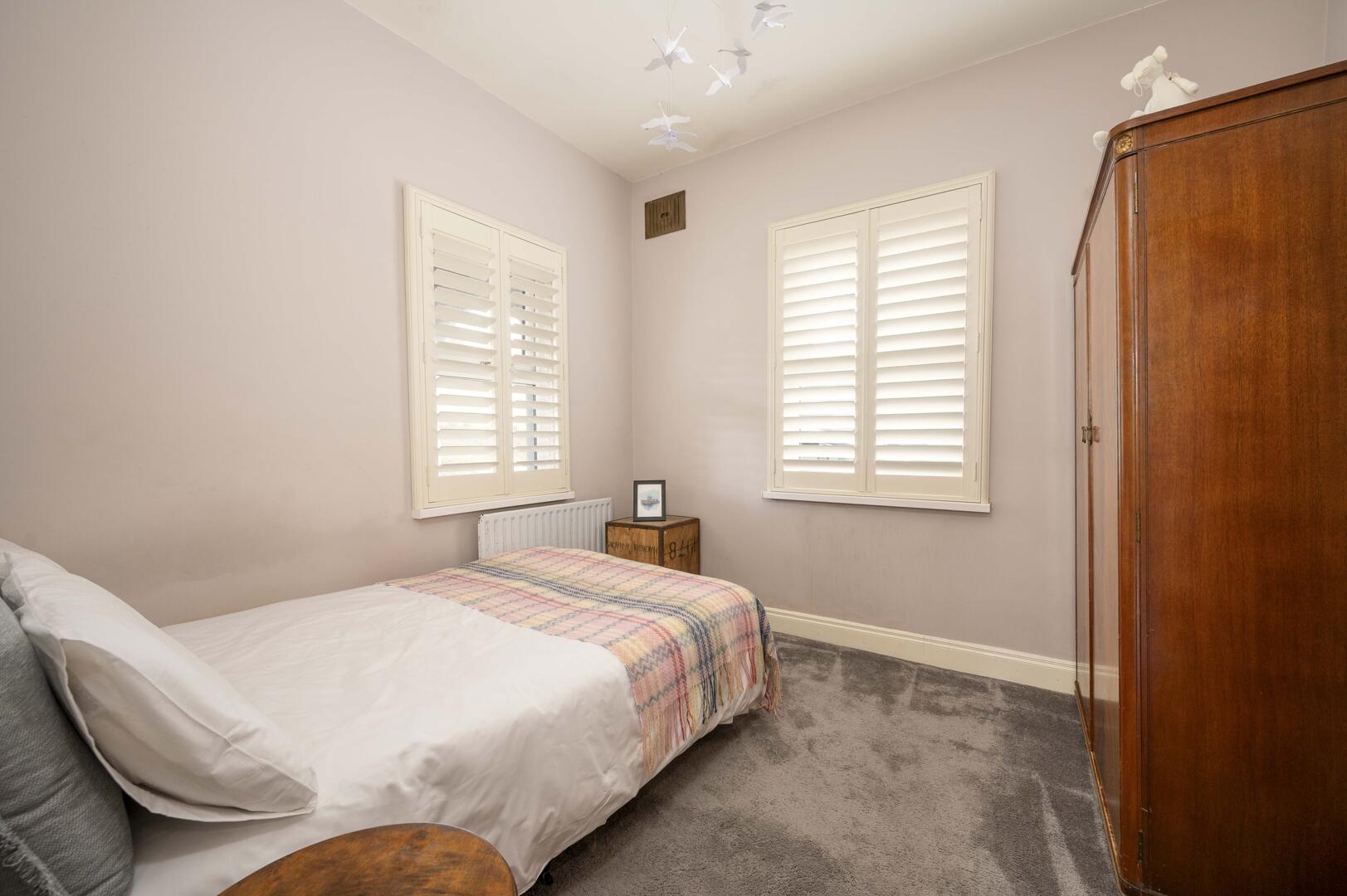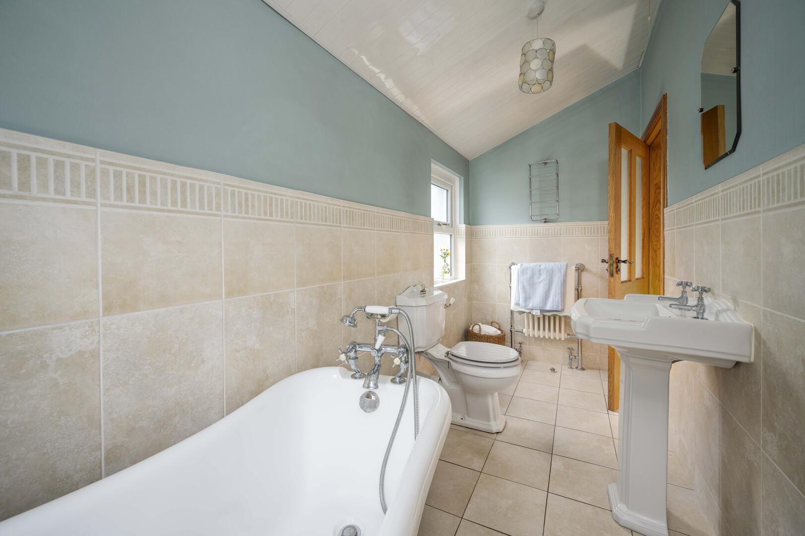 The double bedroom is tastefully decorated in neutral tones and benefits from plantation shutters and comfortable proportions. The bathroom is generous in size and fitted with a traditional-style suite, including a roll-top bath, wash hand basin and WC.