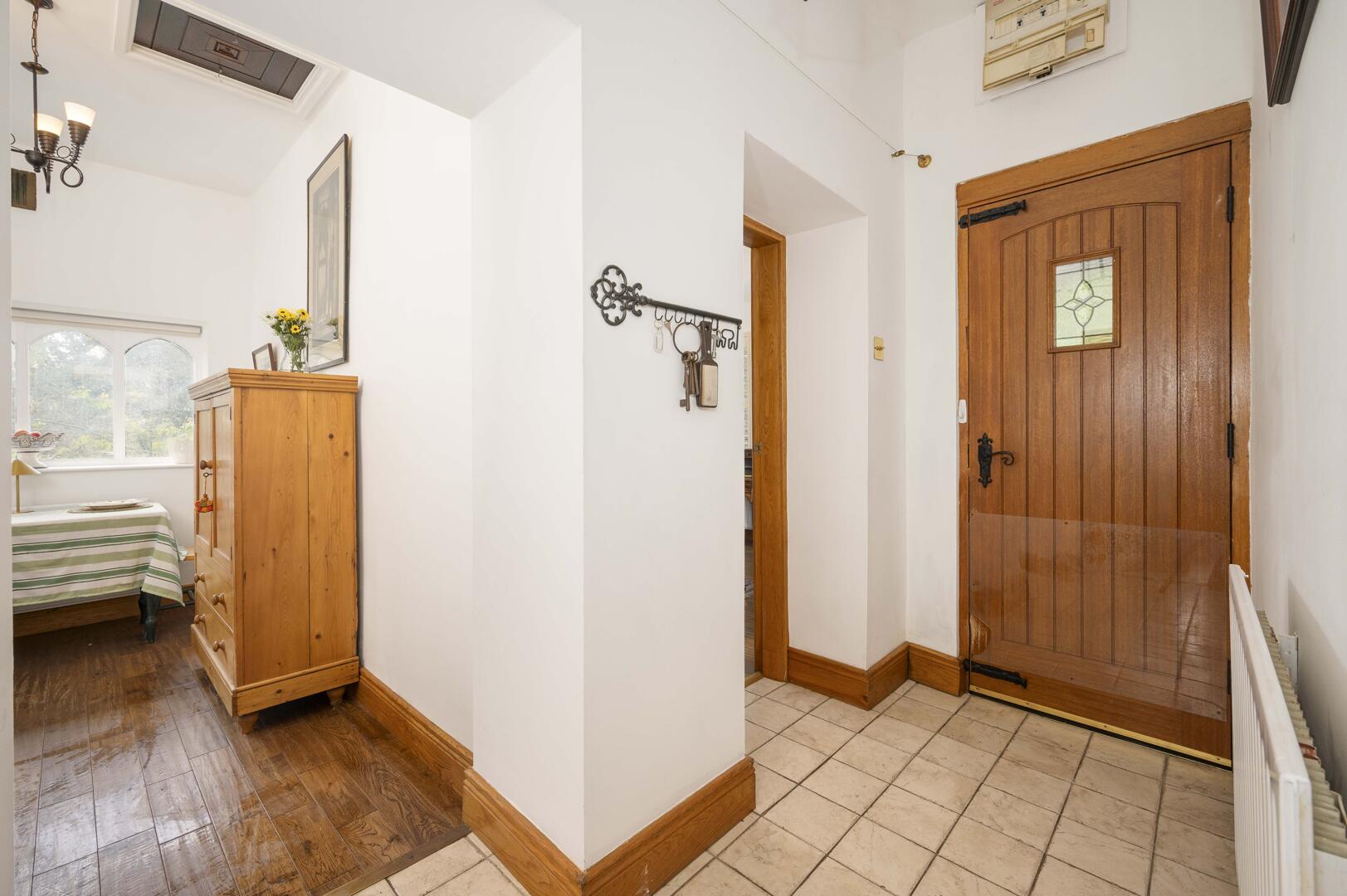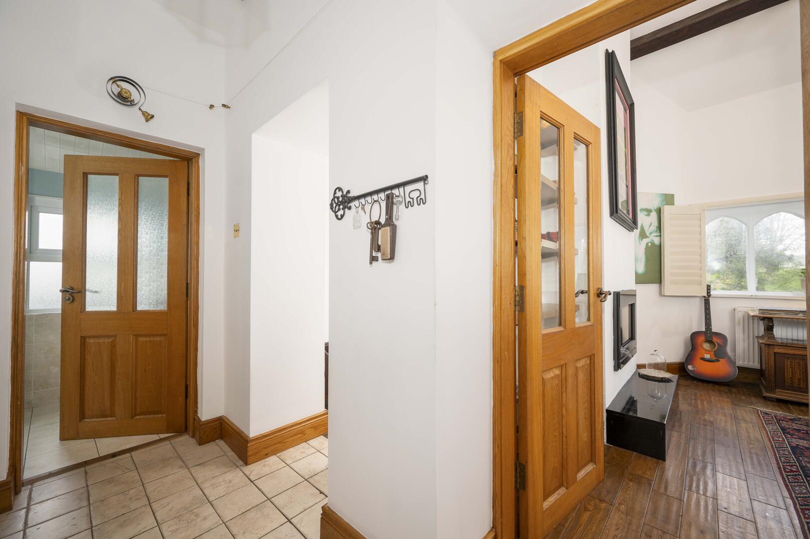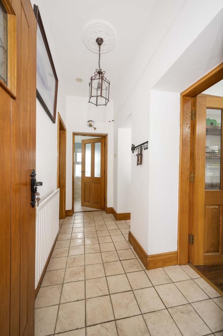 Welcoming entrance hallway with tiled flooring and solid wood doors