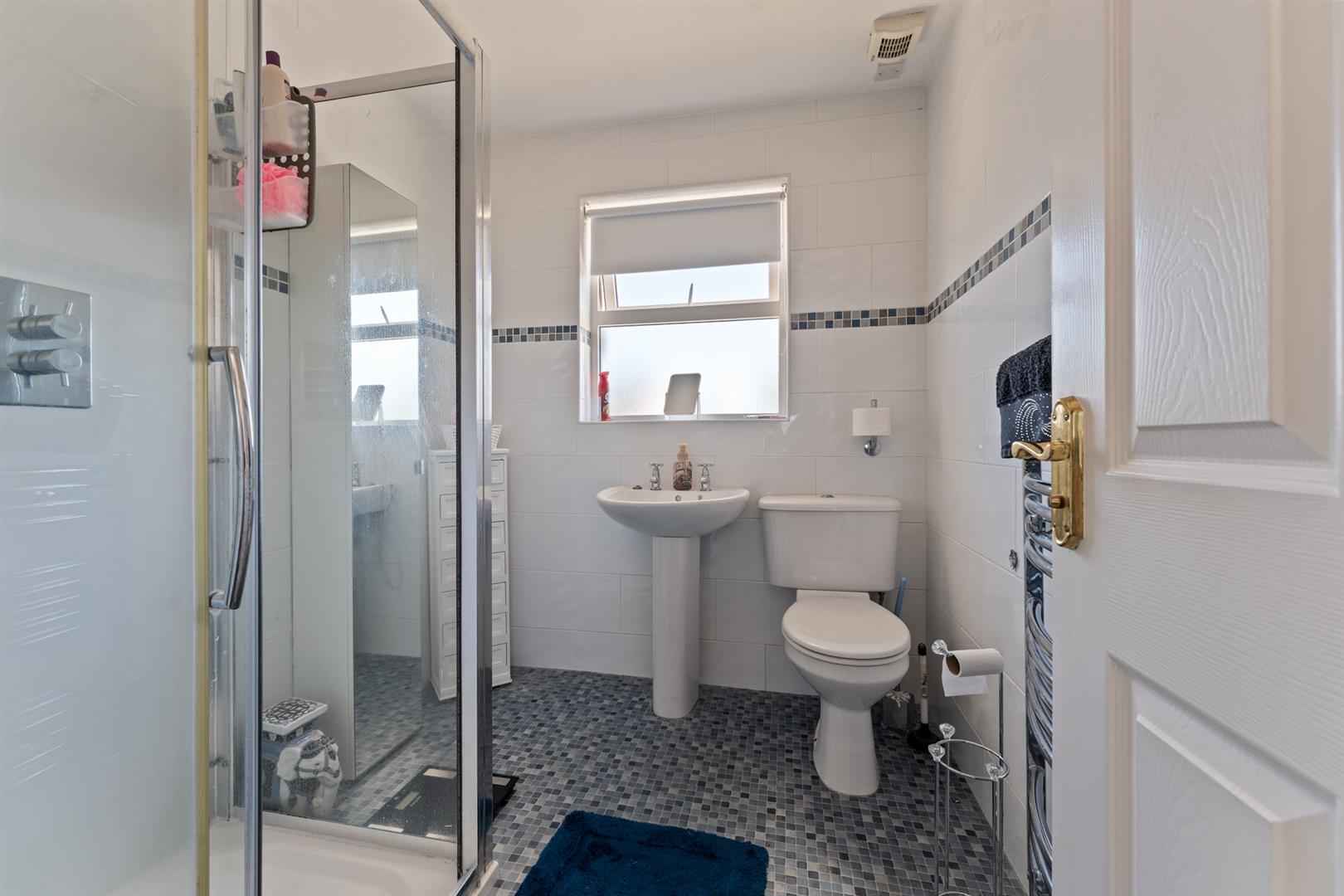 Upstairs, the property offers three well-proportioned bedrooms, two of which benefit from built-in storage, along with a modern shower room finished with a contemporary white suite and rainfall shower.