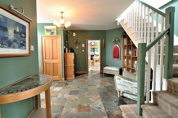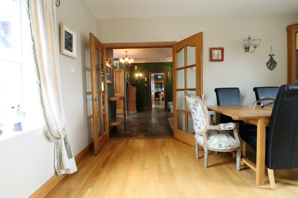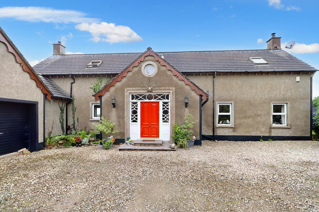 Situated in an idyllic country location this delightful property although only built in 2000 has been sympathetic designed to perfectly fit in with the period architecture of the local area. Beautifully presented and full of character and charm throughout this deceptively spacious property is set in a prime site of circa one acre with stunning views as far as the Mournes, Slieve Croob and Scrabo Tower and is set in the sought after Greyabbey area with only a short drive bringing you to the quaint village centre with its selection of coffee houses, restaurants, popular antique shops, Set off the main road down a small gated laneway the property is approached by sweeping driveway with ample car parking for several cars, boats, horse boxes etc and fabulous mature wrap round gardens. Internally the property comprises of bright and spacious entrance hall, stunning dual aspect lounge with feature inglenook fireplace with wood burning stove, dining area and views over the gardens, spacious country style kitchen with bespoke handmade solid oak units and oil-fired Aga range, open to family room /snug with wood burning stove leading on to sunroom with vaulted ceiling and access to decked sun terrace. In addition is bathroom, utility room with seperate W.C and access to large double storey garage with power and light. Upstairs there are four beautifully presented bedrooms, master with ensuite and walk in robes and family bathroom with freestanding bath. Externally the property is set on a large private site with mature wraparound gardens of circa one acre, the rear the property is encircled with decked sun terrace providing outstanding views of the surrounding area, meadow gardens, pond, barbecue hut and to the side of the property are several outbuildings including two large sheds both with power and light and office/work shop....all this providing a unique opportunity to not only buy a beautiful family home in such a picturesque location but also the change of pace and lifestyle that comes with it ...